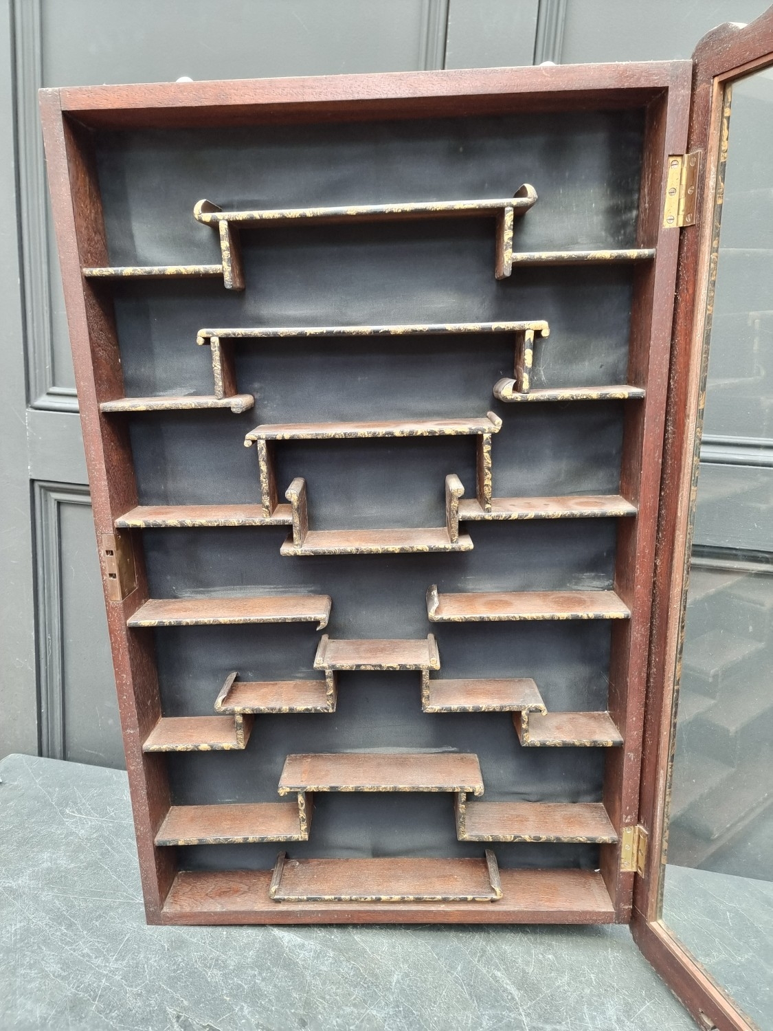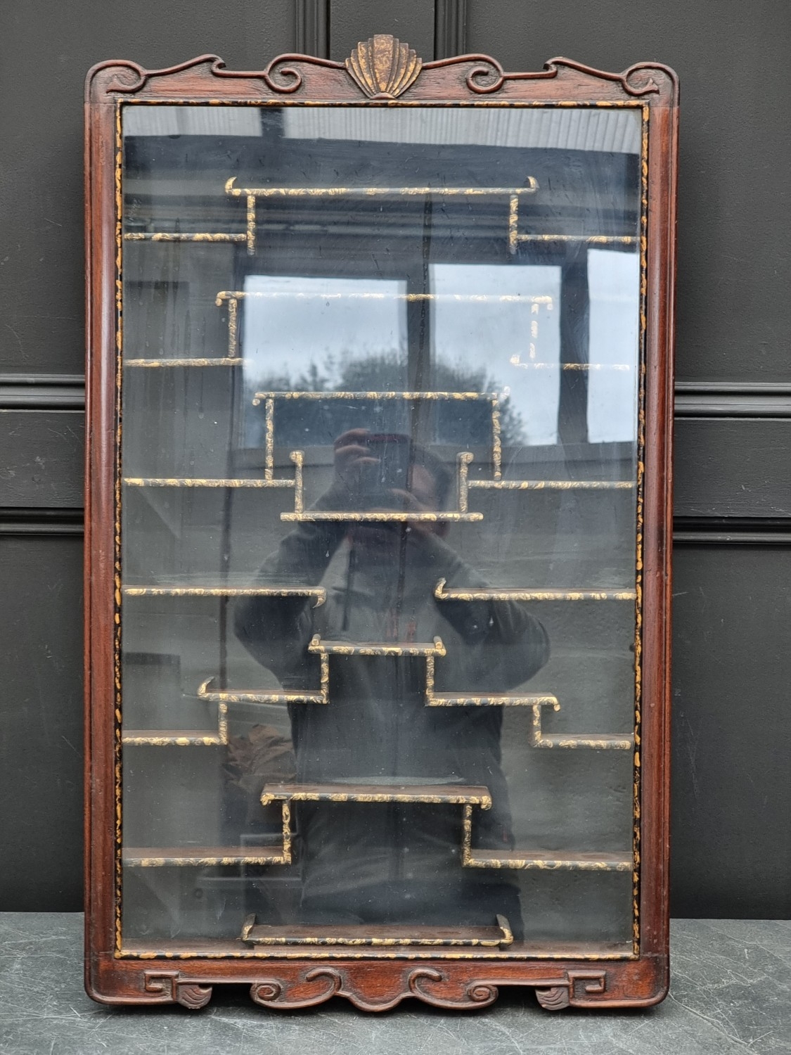 A 1920s Chinese hardwood hanging display cabinet, 84 x 51cm.