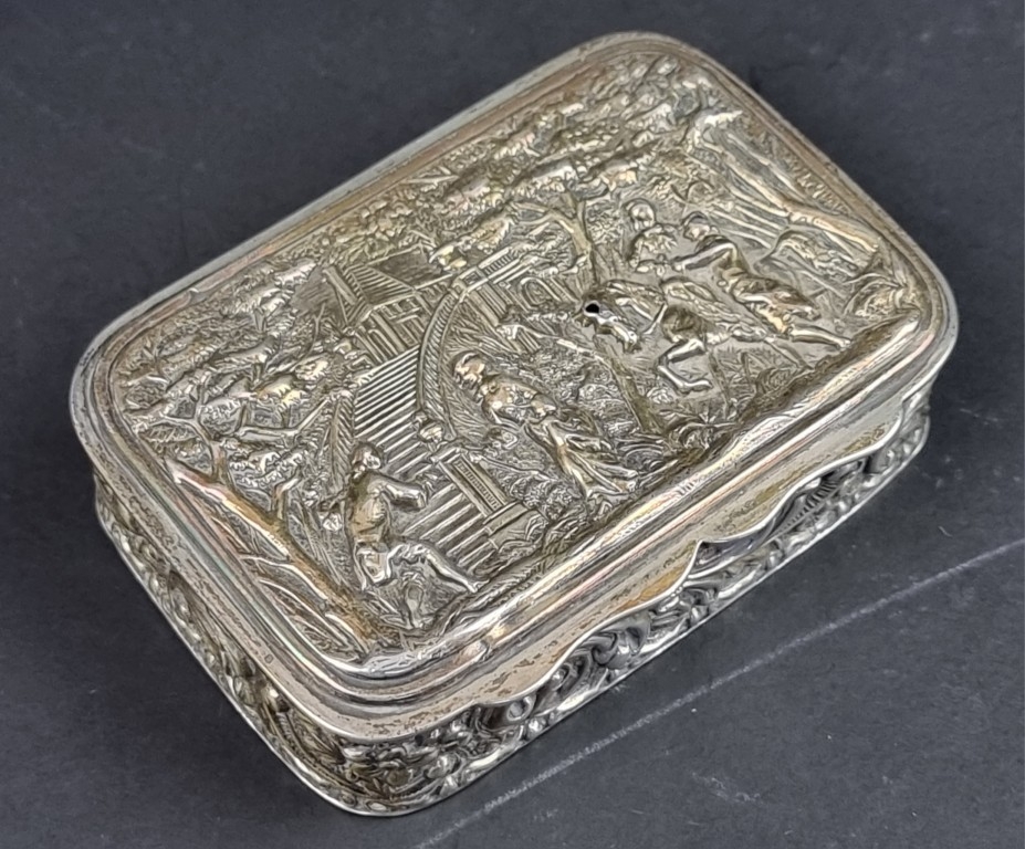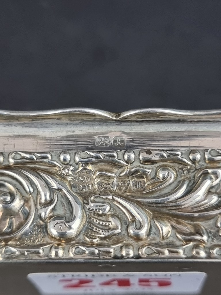A Victorian repousse silver snuff box, by George Nathan & Ridley Hayes, Chester 1901, 8.8cm wide, 81g.
