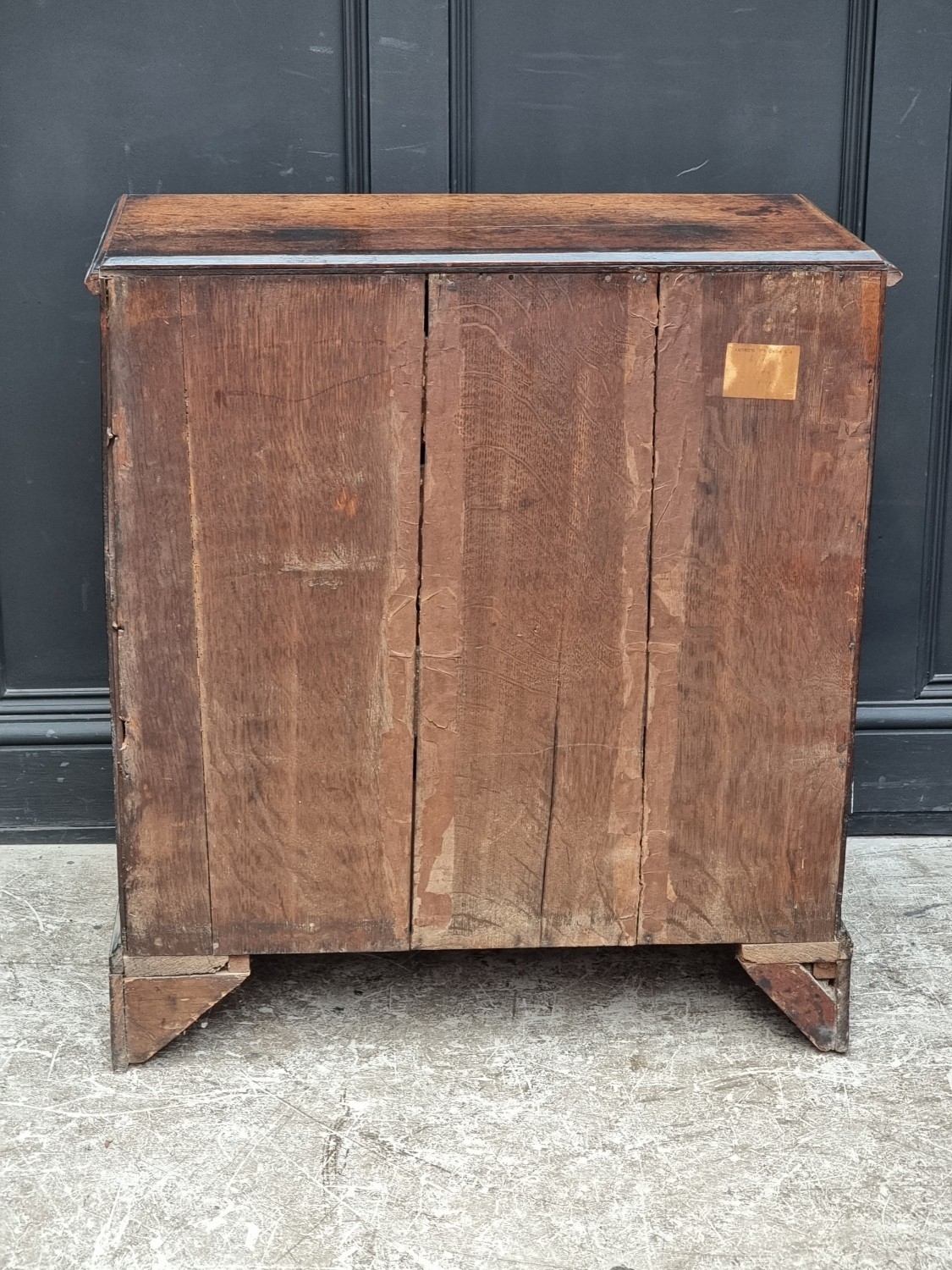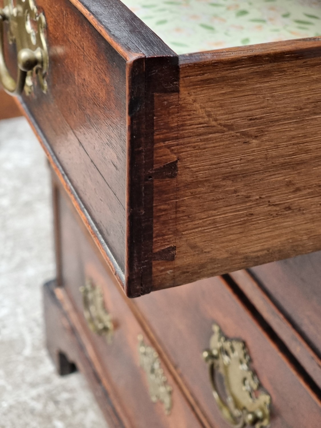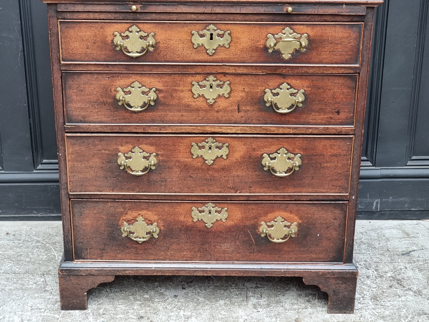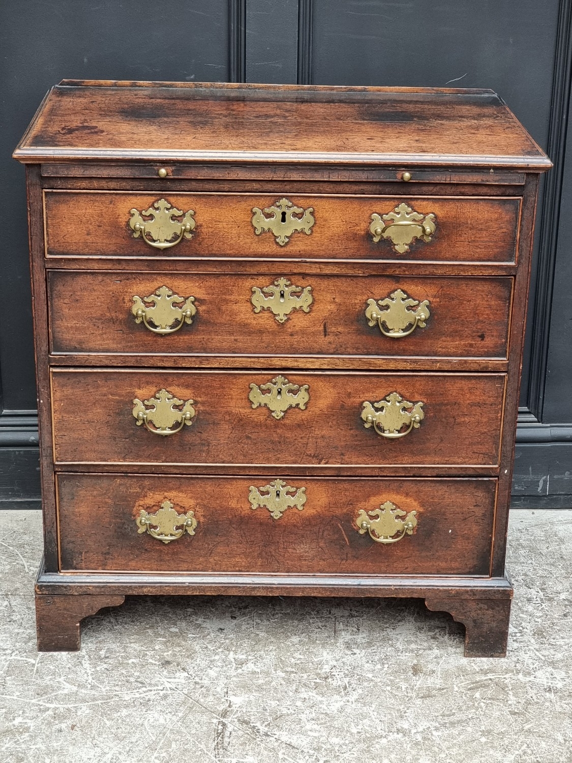 A small George III mahogany chest of drawers, with brushing slide and original handles, 86cm high x 79.5cm wide x 47.5cm deep.