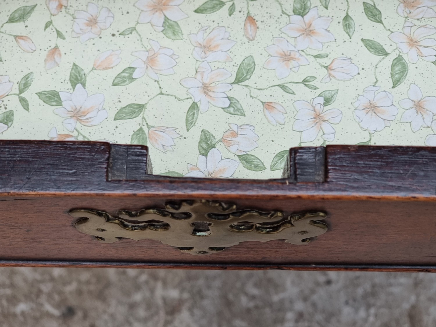 The lower left handle has been re-attached as some stage (using the same holes) and subsequently sits a little lower on the drawer front.