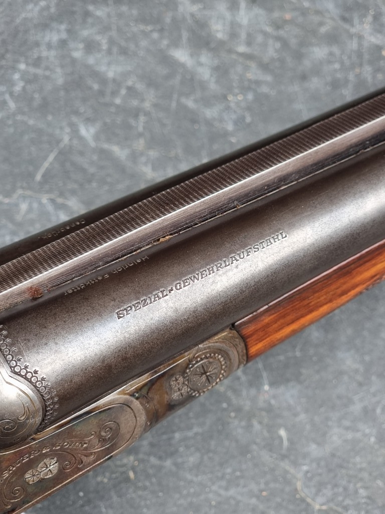 A J P Sauer & Sohn 12 bore double barrel side by side shotgun, Serial No.2408.