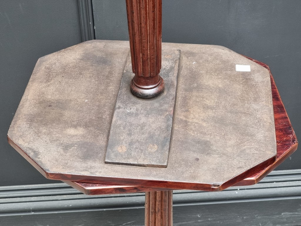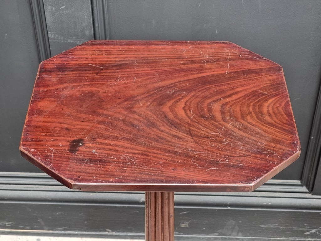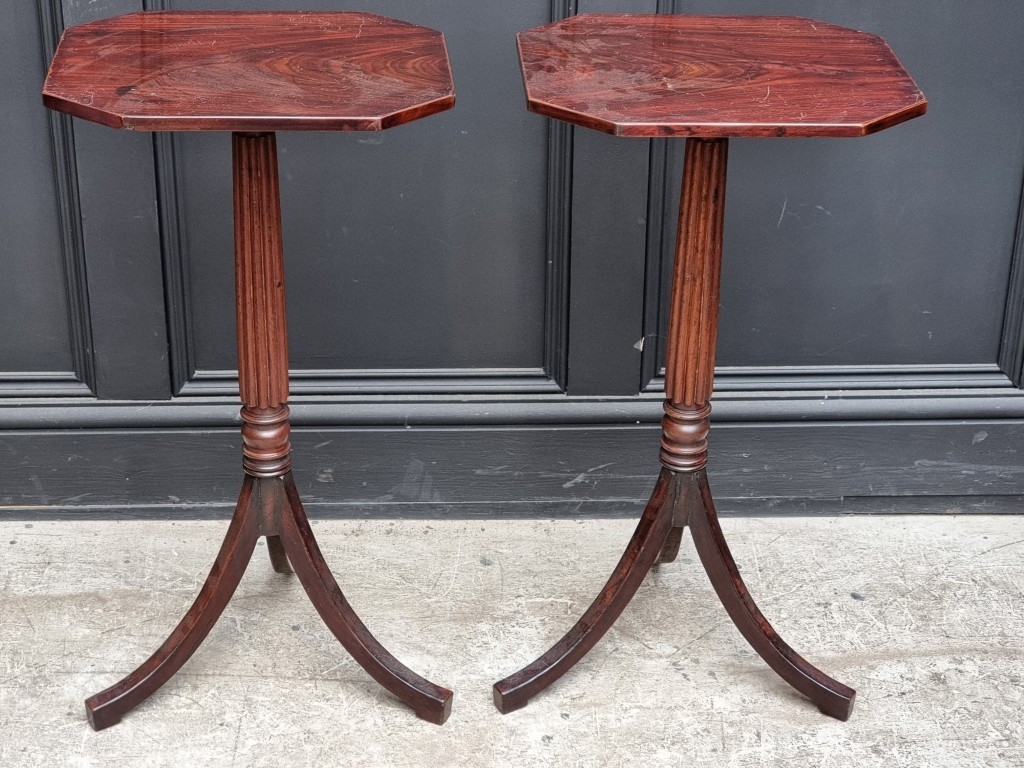 A pair of Regency style mahogany octagonal tripod tables, 74cm high x 39.5cm wide.