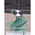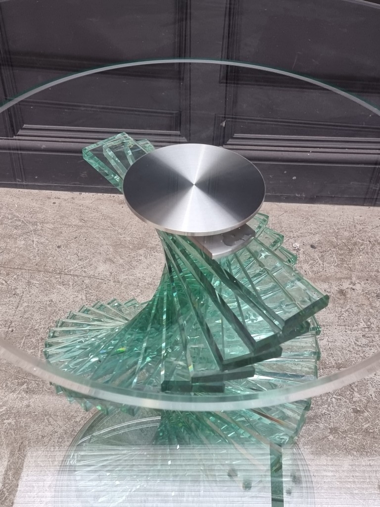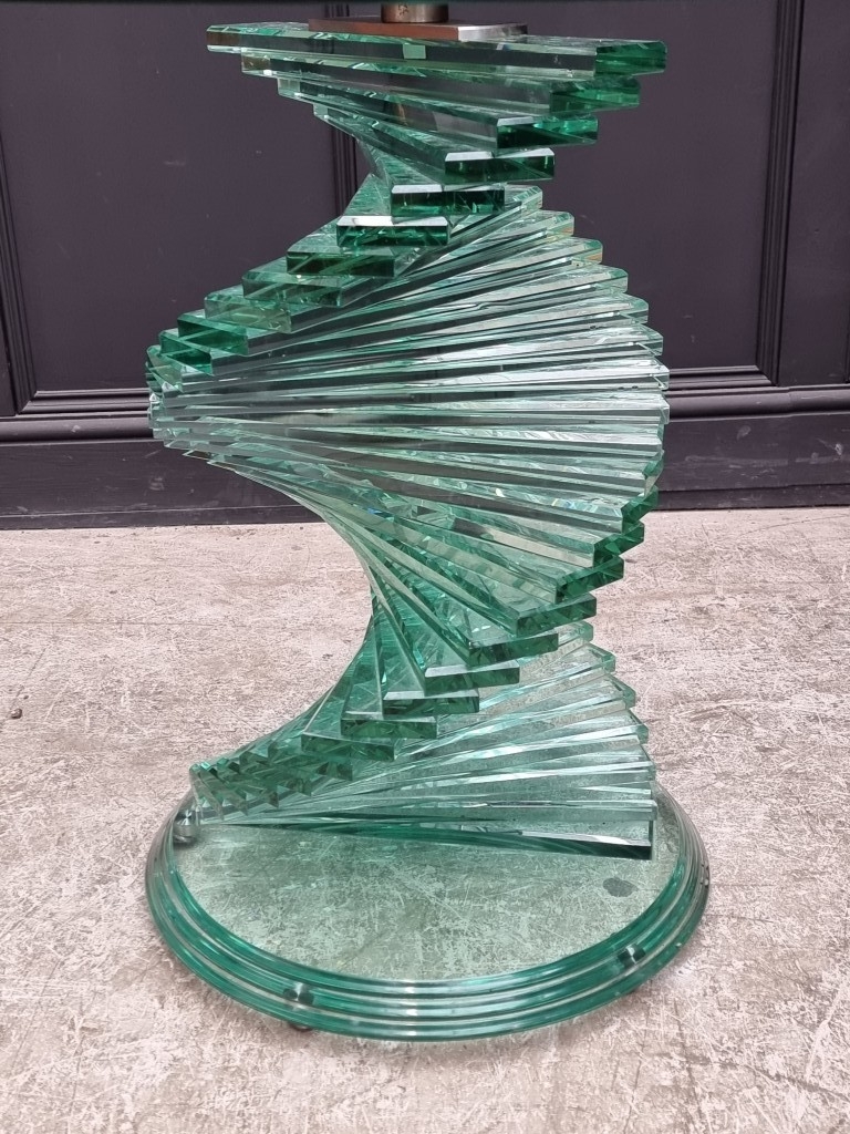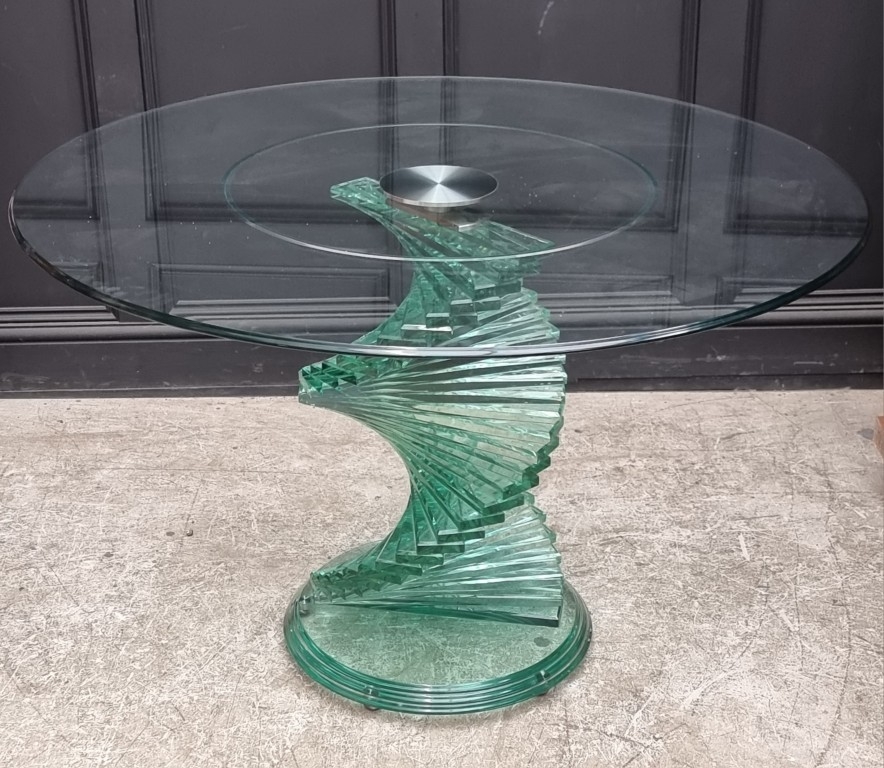 A contemporary Italian glass circular table, with spiral helix pedestal, in the manner of Danny Lane, 120cm diameter.