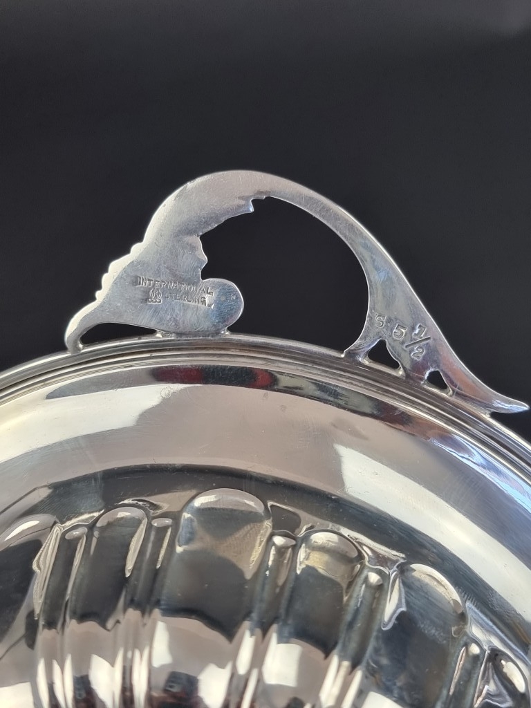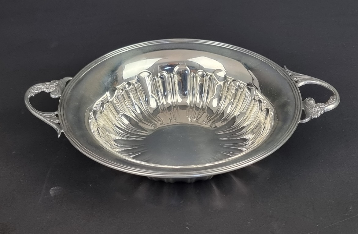 A white metal twin handled bowl, stamped 'Sterling', 23cm wide.