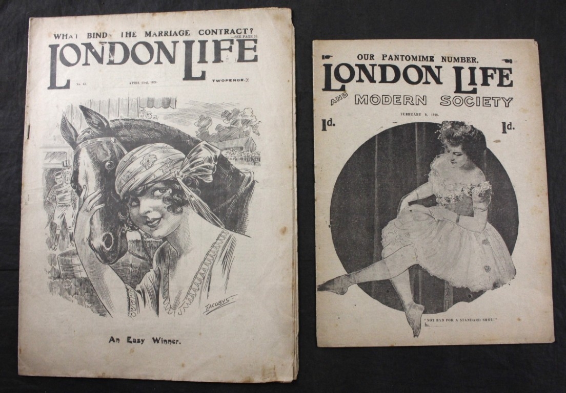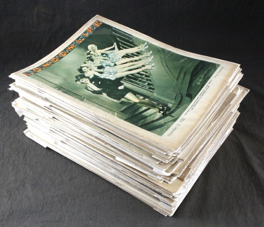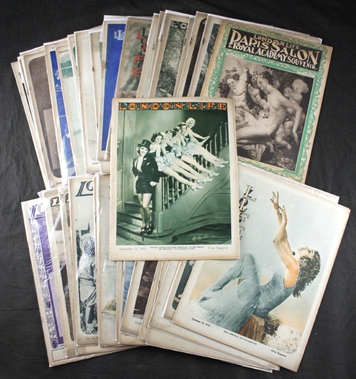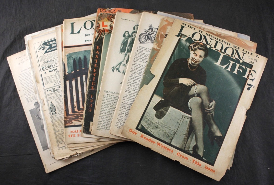 LONDON LIFE: a collection of 64 issues, mostly 1931-33, a few duplicates noted, all in original printed wrappers, stapled, some soiling and wear to some but generally in good condition: together with two larger format Spring/Winter specials of similar period: an early issue for 1921 (No.67) and another similar: plus a bundle of other 1930s issues in poor condition. (Box)