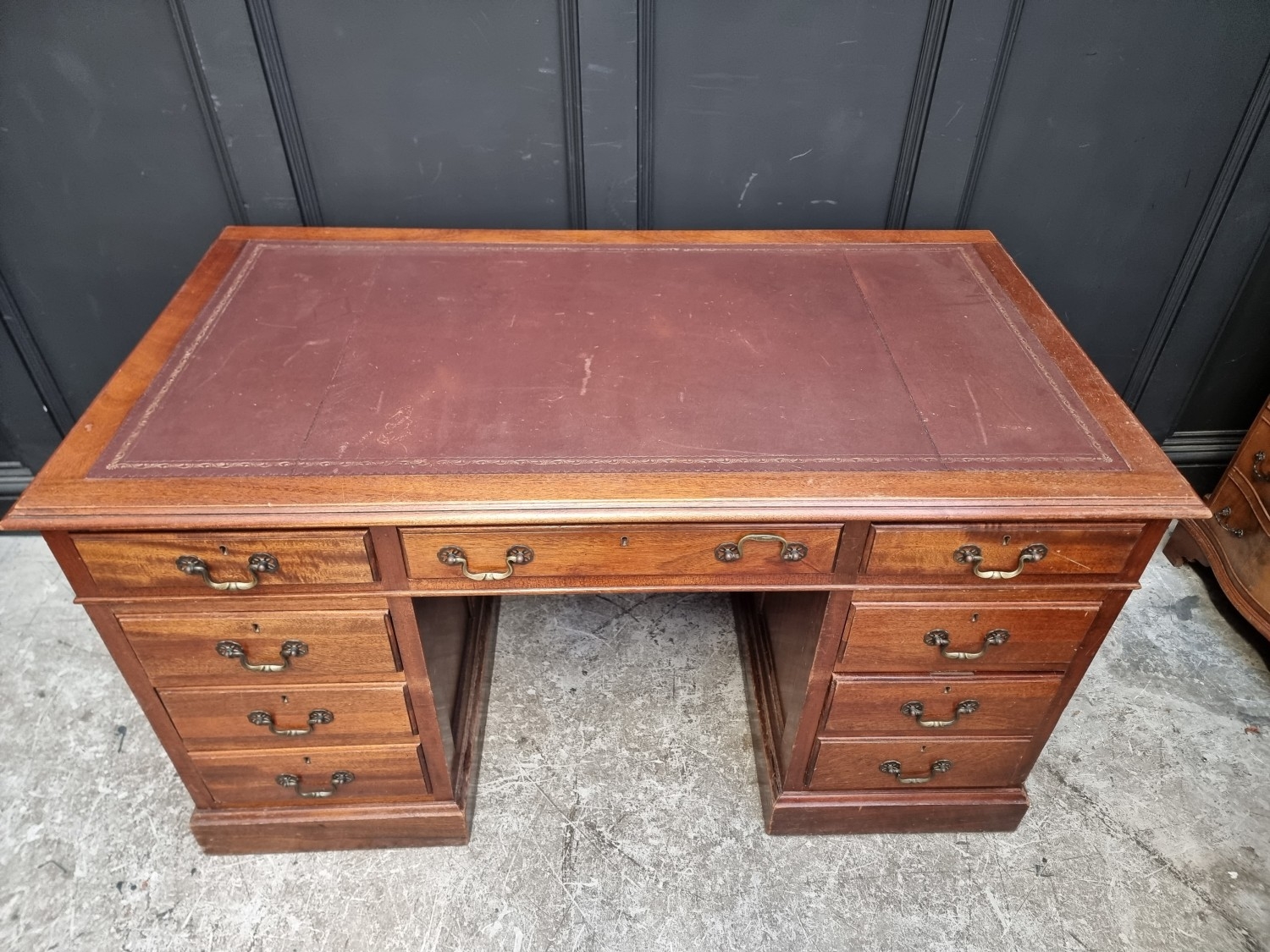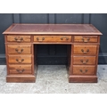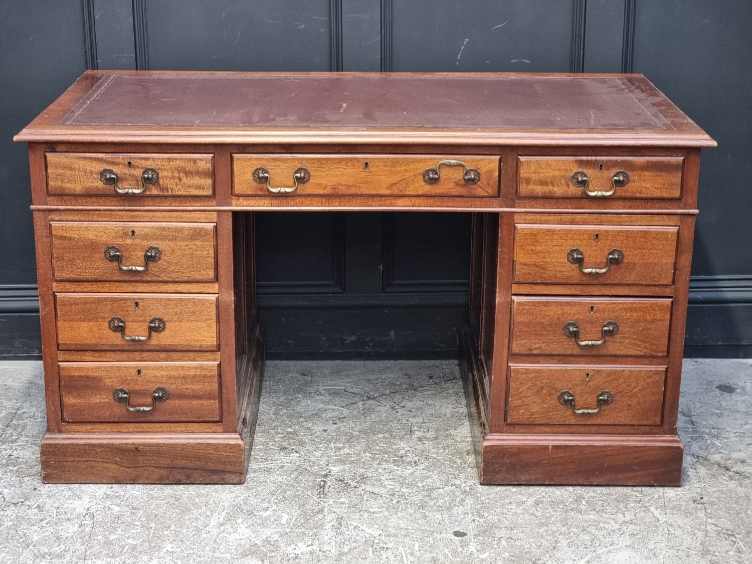 A mahogany pedestal desk, 137.5cm wide.