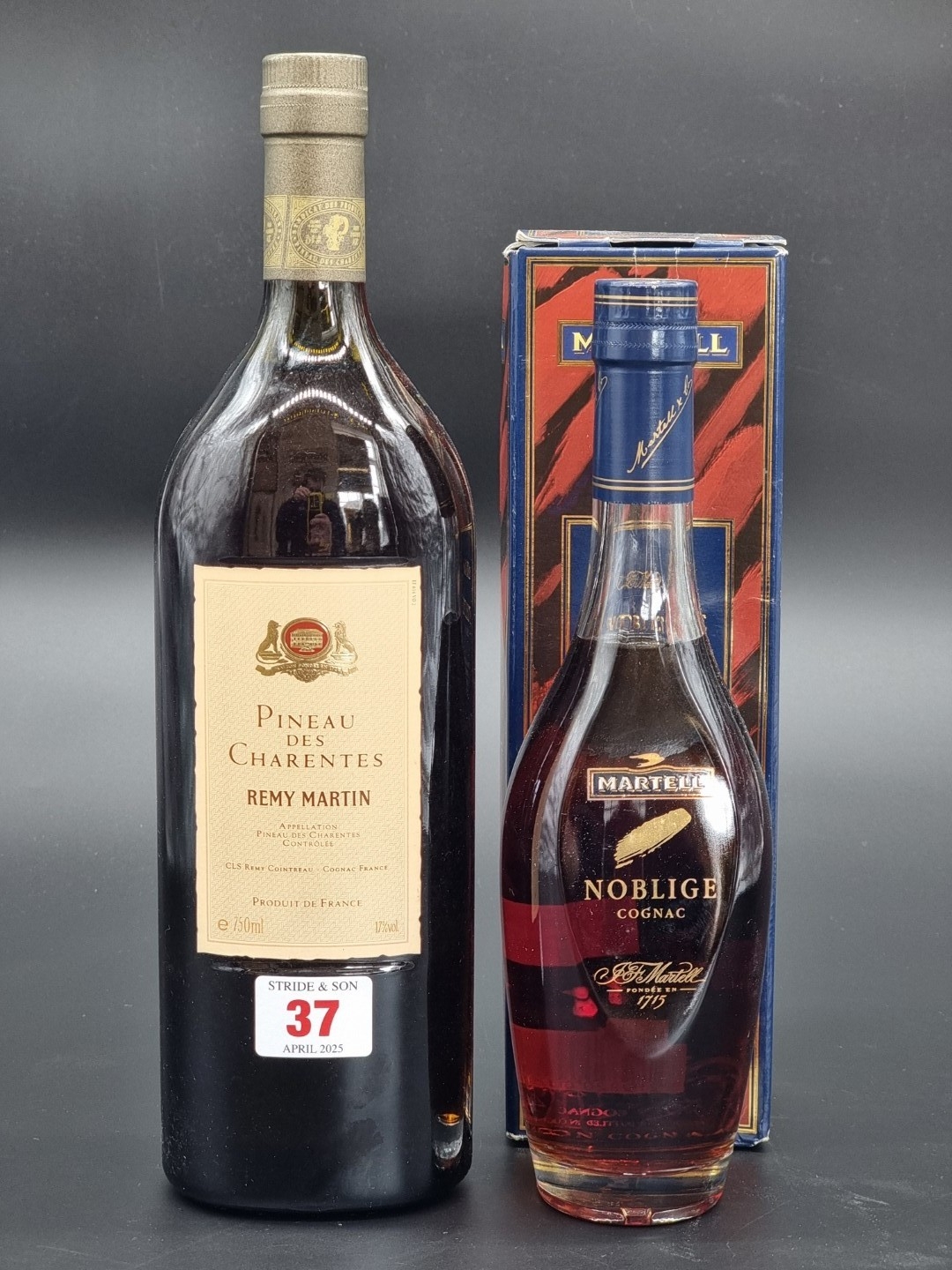 A 75cl bottle of Remy Martin Pineau Des Charentes; together with a 37.5cl bottle of Martell Noblige Cognac, in card box. (2)
