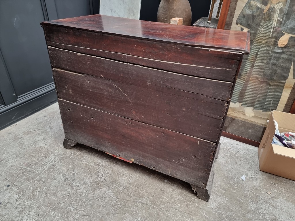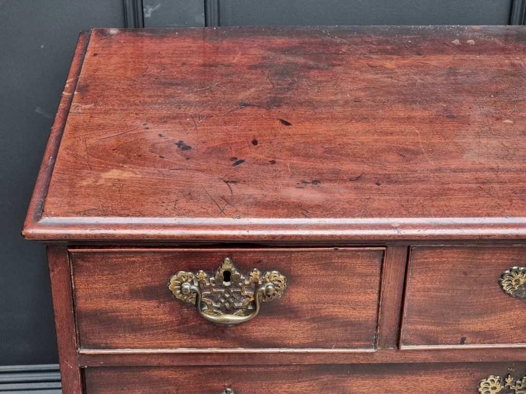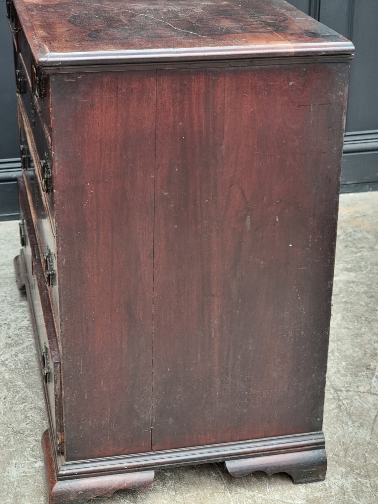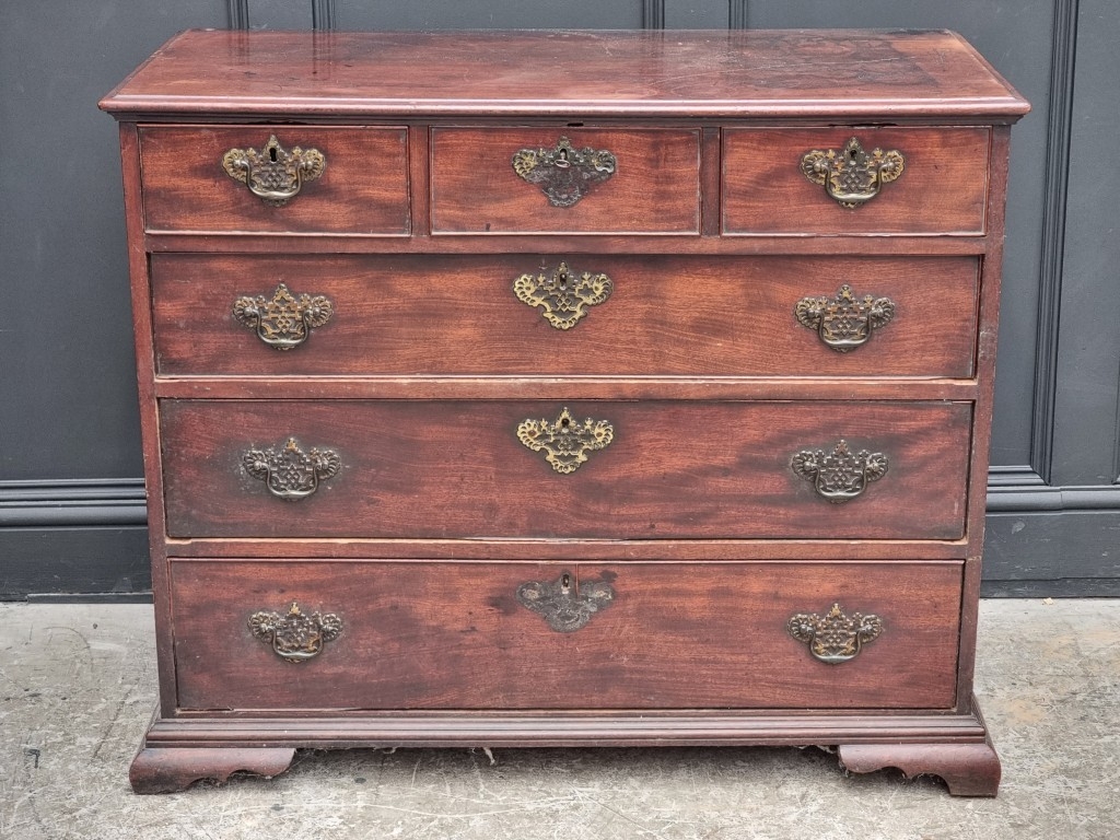 A George III mahogany chest of three short and three long graduated drawers, (on reduced bracket feet), 108.5cm wide.