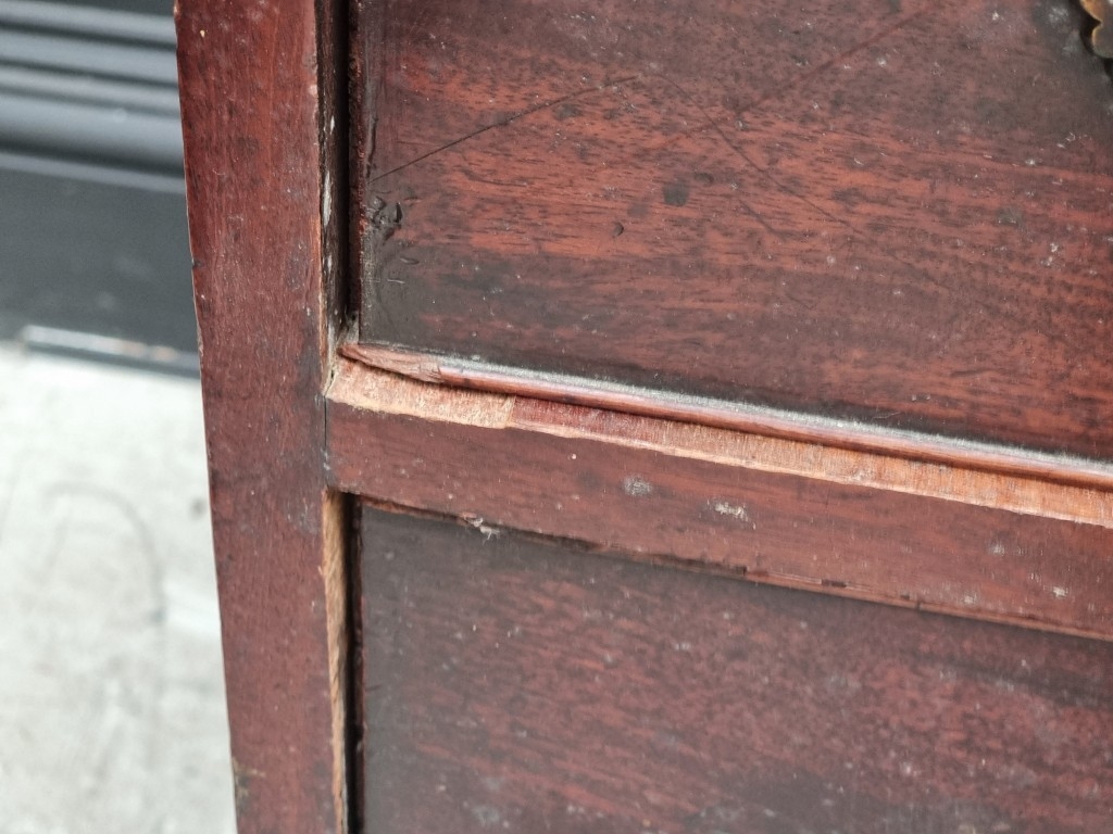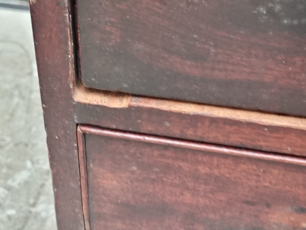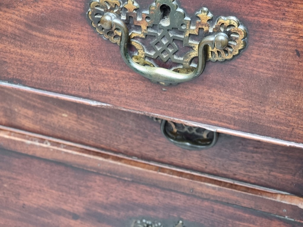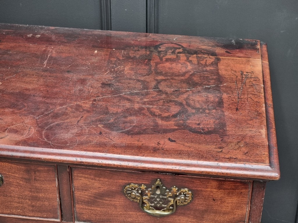 A George III mahogany chest of three short and three long graduated drawers, (on reduced bracket feet), 108.5cm wide.