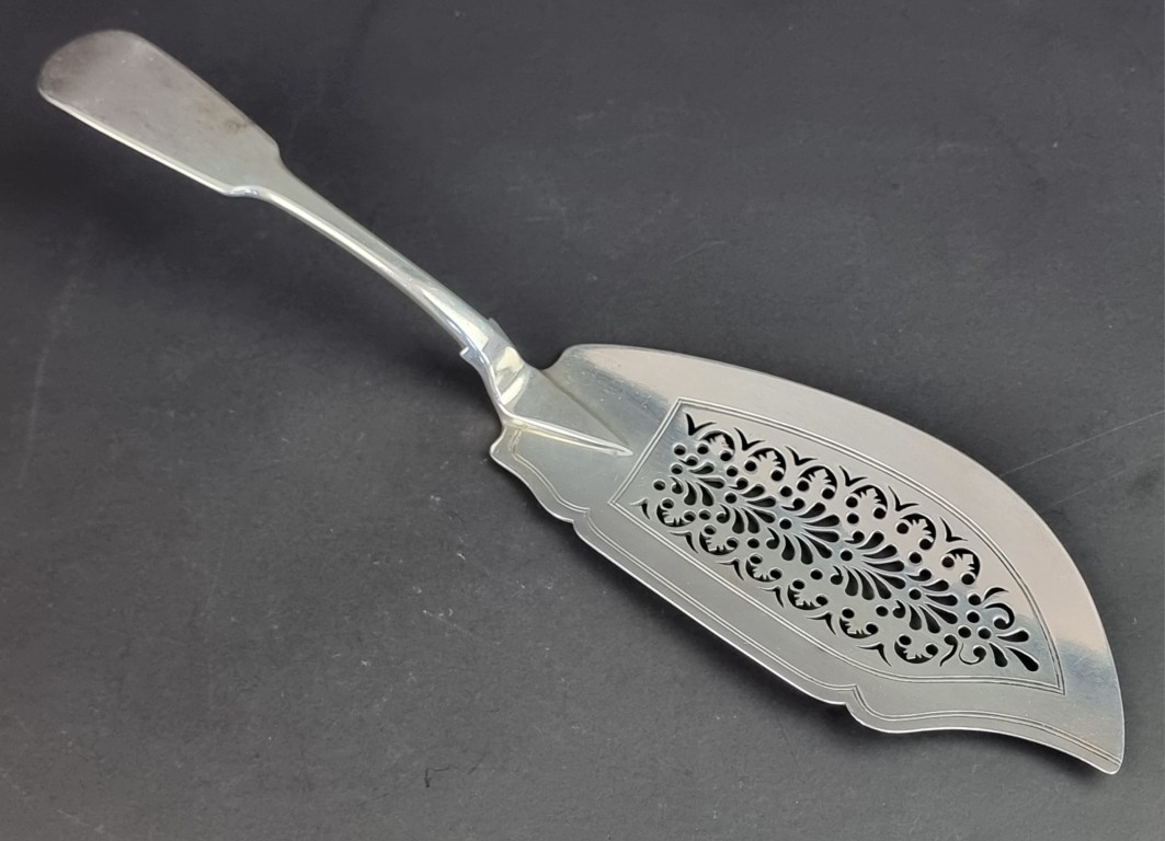 A Victorian silver fish slice, by Robert Williams, Exeter 1842, 164g.