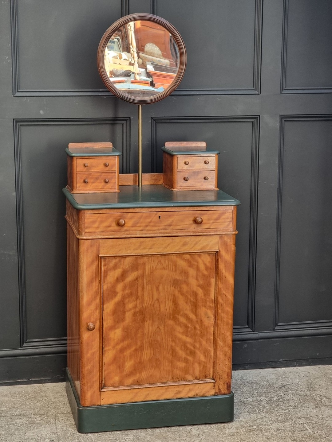 An unusual late Victorian satinwood gentleman's dressing stand, stamped 'Heal & Son, London', 66cm wide.