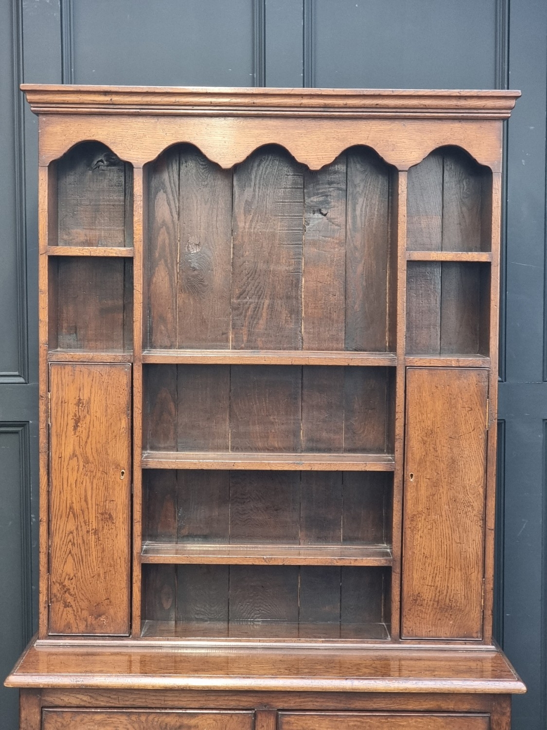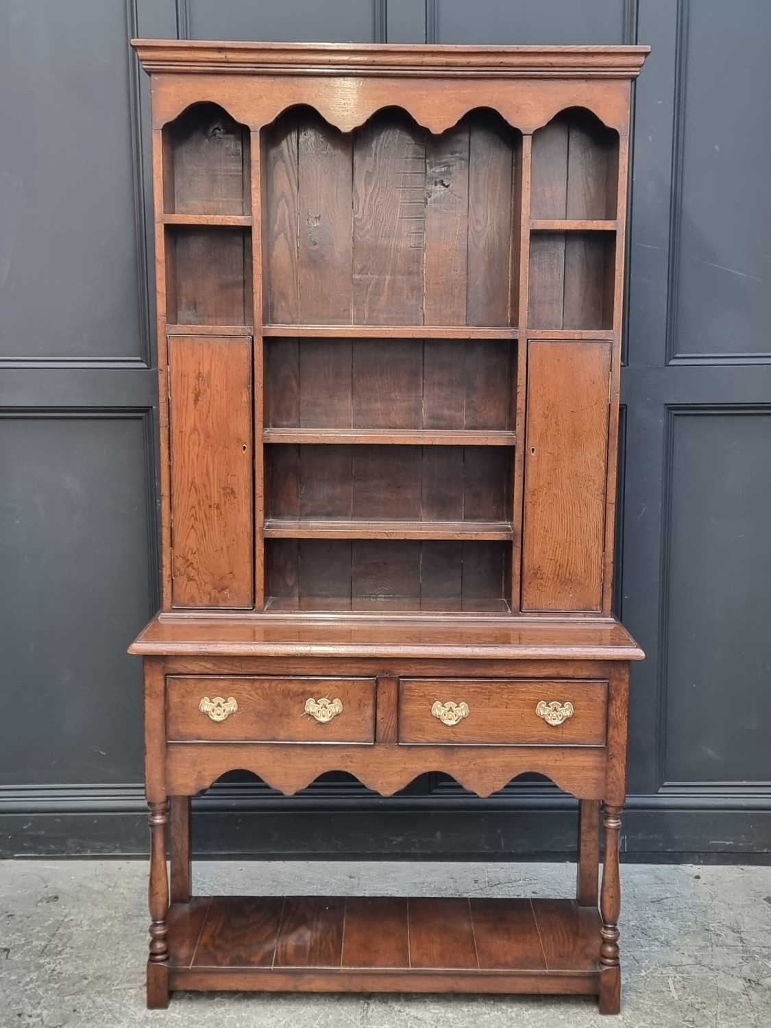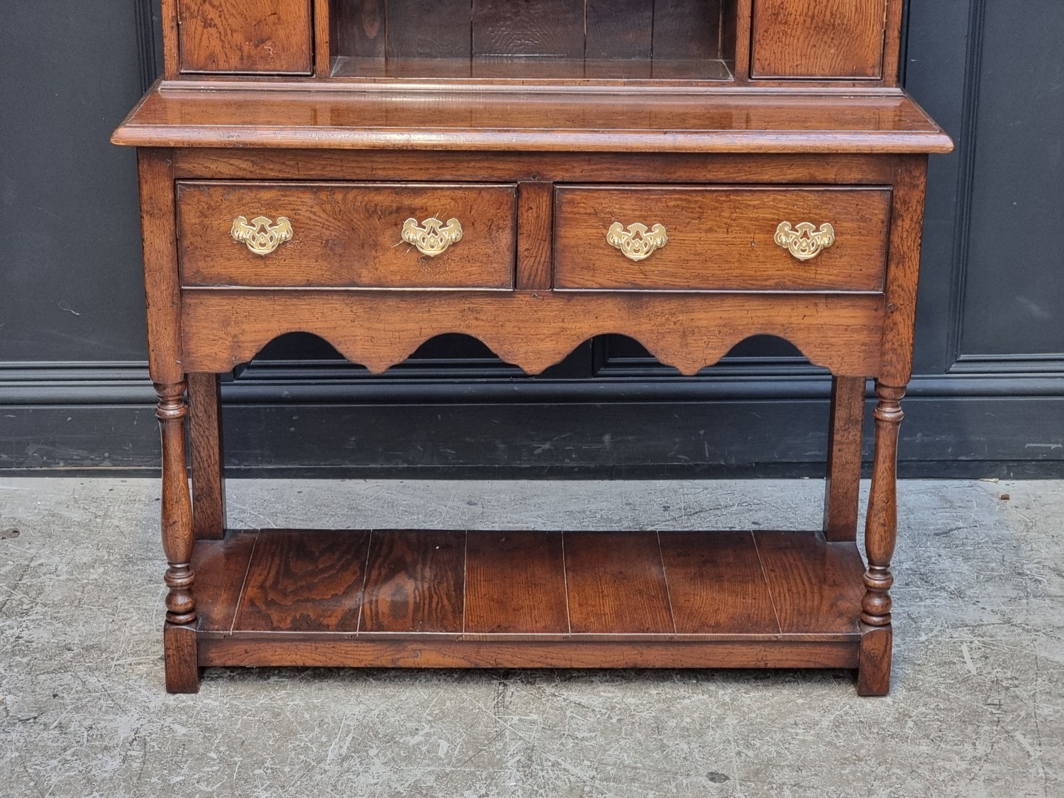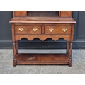 A good and small reproduction oak dresser and rack, 103cm wide.