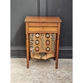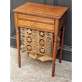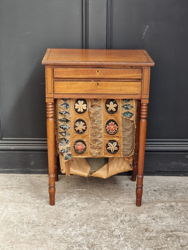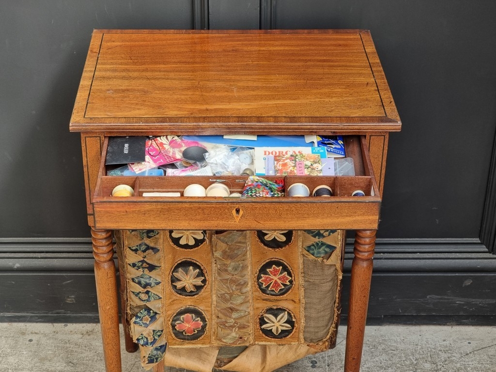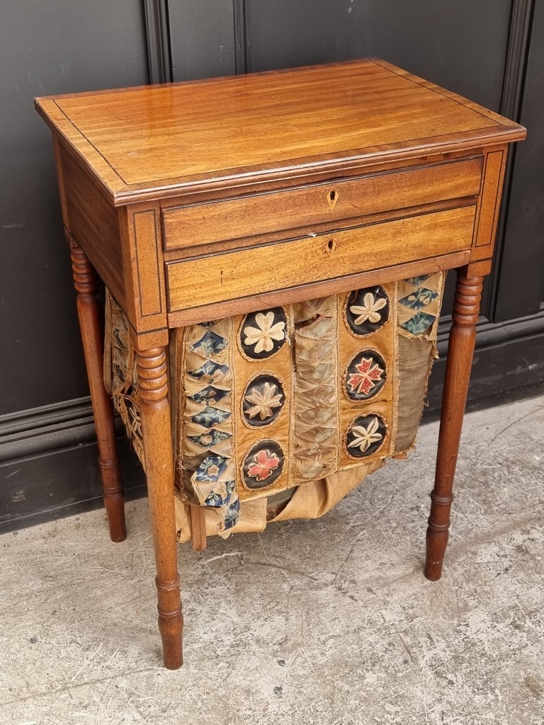 A Regency mahogany and ebony strung work table, 49.5cm wide.