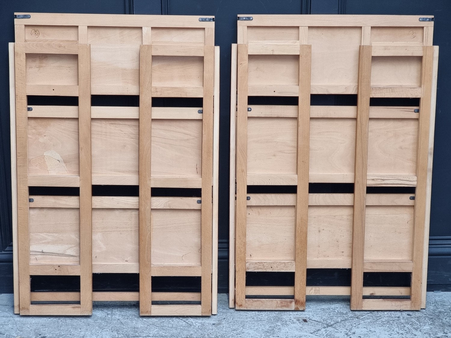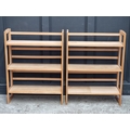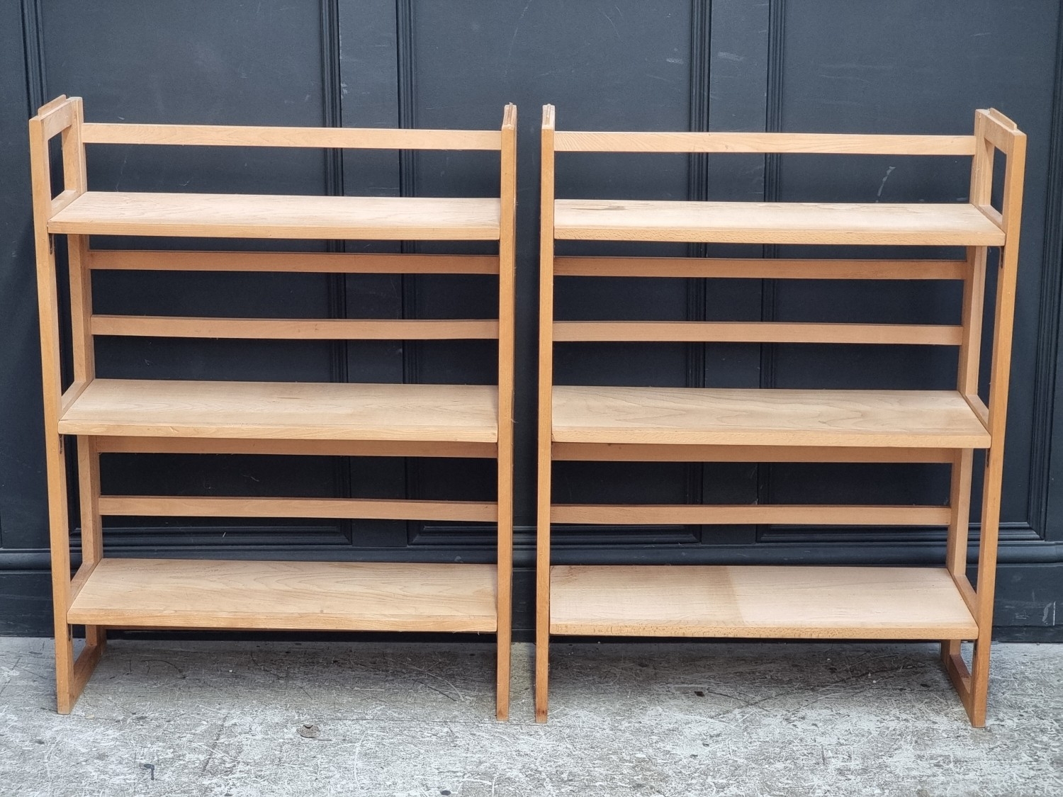 Two modern folding three-tier bookcases.