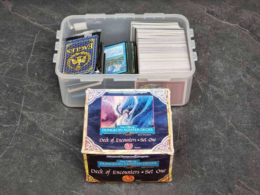 MAGIC THE GATHERING: a quantity of loose cards, mostly dated 1994, 1995, 1996, and 1997; together with an 'Advanced Dungeons & Dragons Deck of Encounters', (opened); a sealed pack of X-Files trading cards; and eleven 'Eagles' cards.