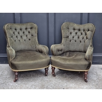 A pair of late 19th century French walnut and inlaid salon chairs, incorporating Sevres style porcelain plaques.