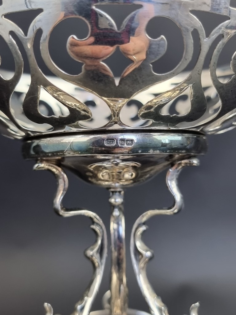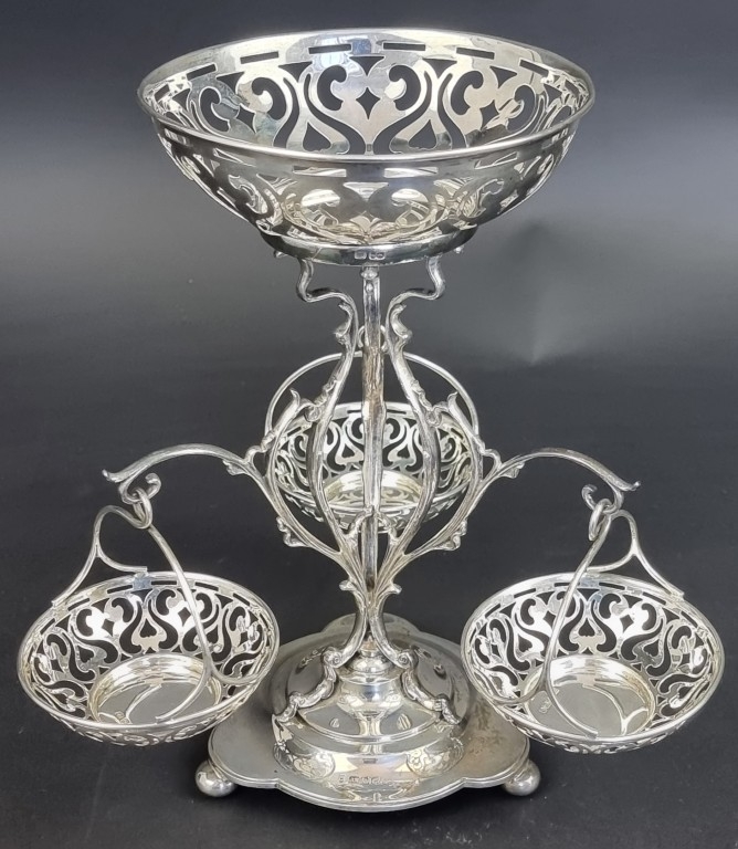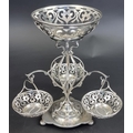 A silver epergne, having pierced silver dishes, by Joseph Rodgers & Sons, Sheffield 1911, 24cm high, 536g.