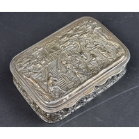 A Chinese export white metal matchbox case, stamped 'Sterling', 6cm wide.
