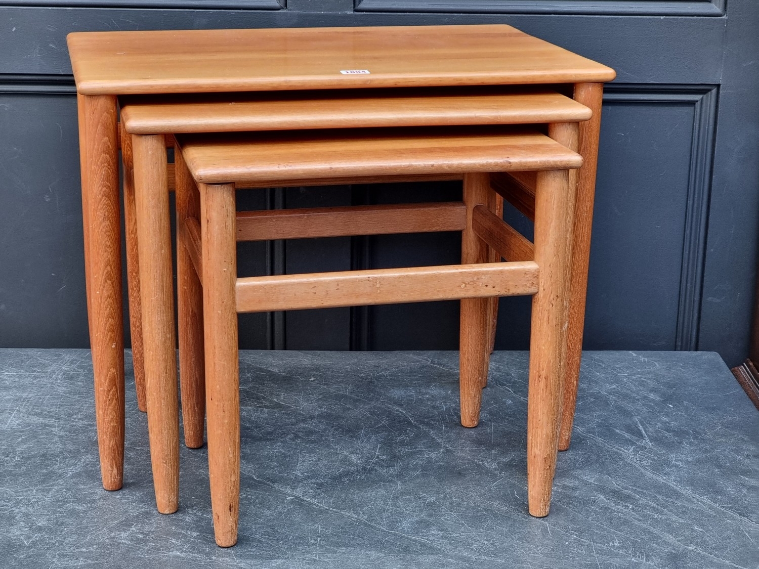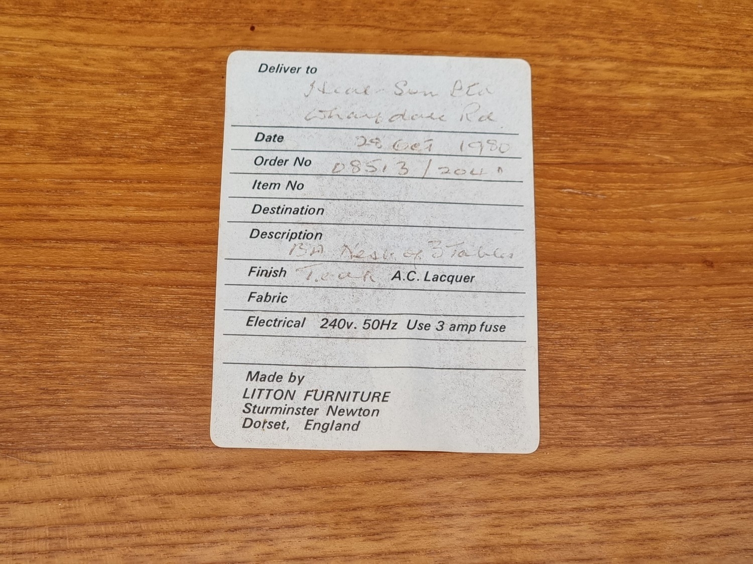 A nest of three teak occasional tables, by Litton Furniture for Heal & Son, largest 60.5cm wide.