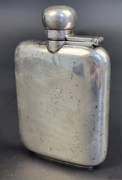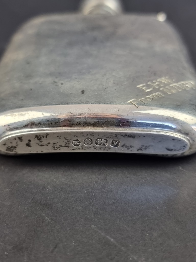 A silver hip flask, by Carr's of Sheffield Ltd, Sheffield 1998, 12.5cm high, 193g.