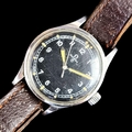 A circa 1953 Military issue RAF Omega stainless steel manual wind pilot's wristwatch, 37mm, Ref. 6B/542, Cal. 283, the case back inscribed with broad arrow, '10549/53' and '6645 101000', '2777-1 SC' to the reverse, with fixed bars, on contemporary brown leather strap, (later Omega crown).