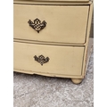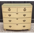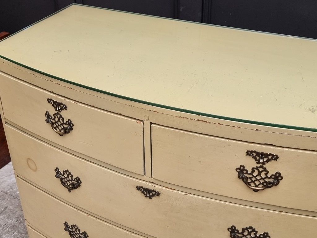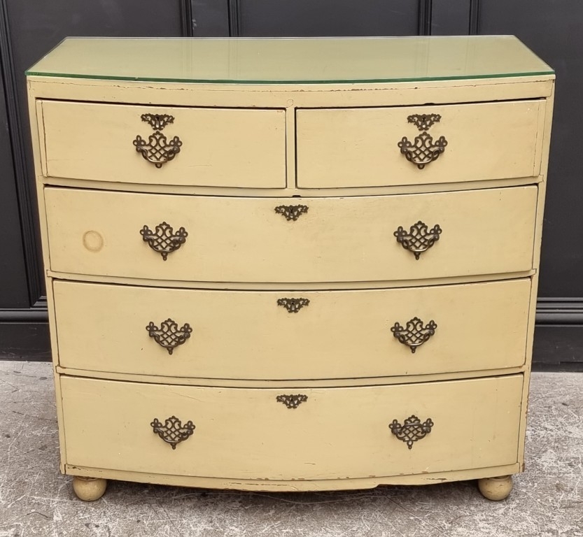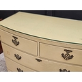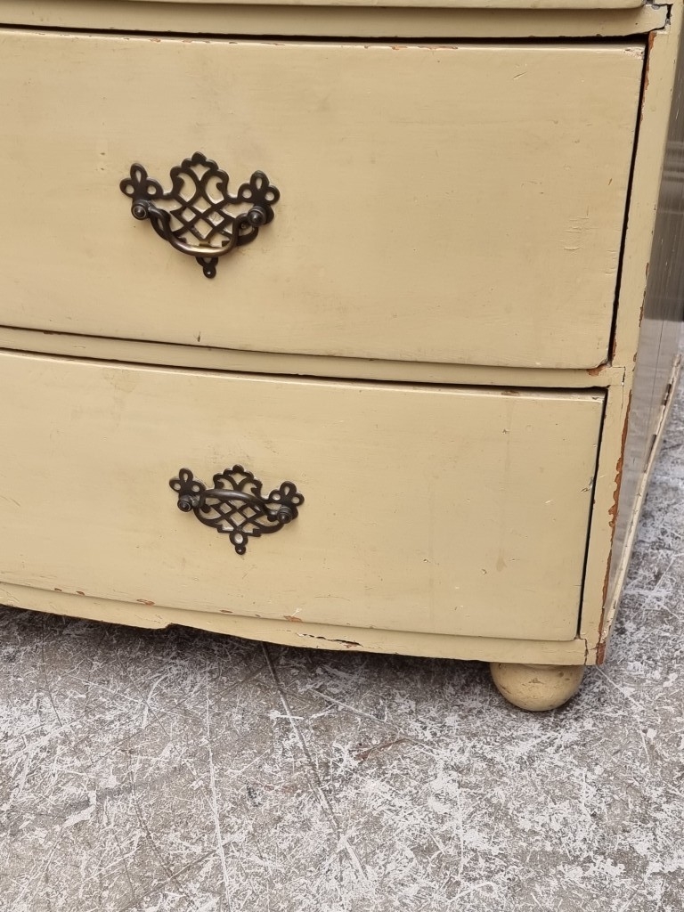 An old cream painted bowfront chest of drawers, 99.5cm wide.