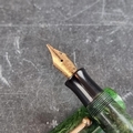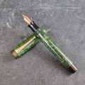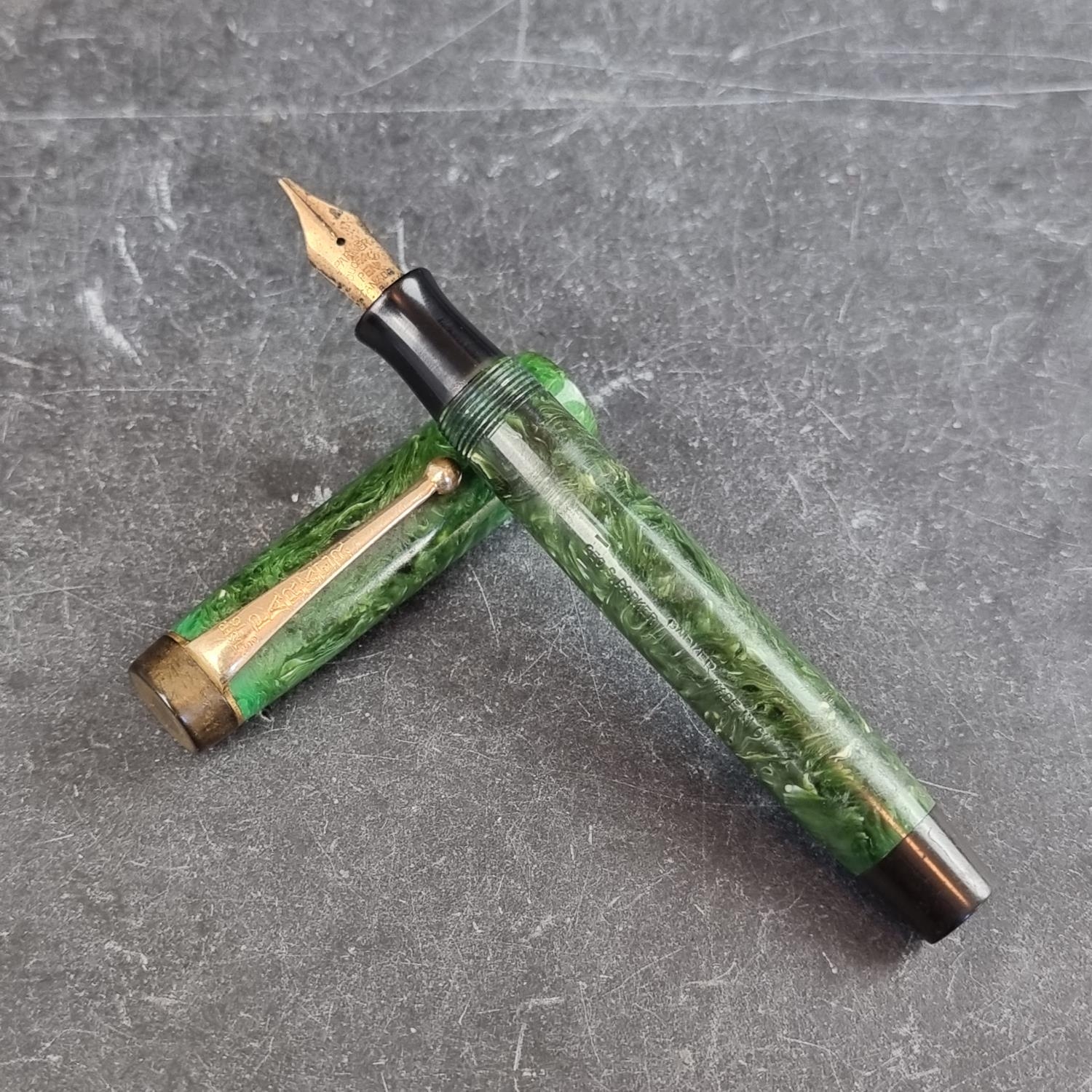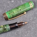A circa 1929-33 Parker streamlined 'Duofold' jade green fountain pen, 14K gold nib, 'Made in Canada', 11.5cm long