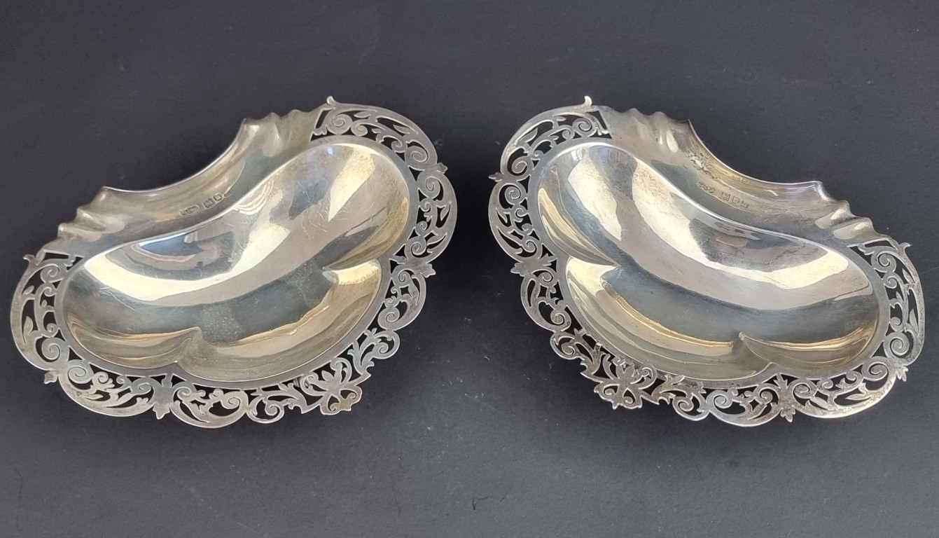 A pair of silver bonbon dishes, by Elkington & Co Ltd, London 1903, 15.5cm wide, 247g.
