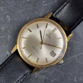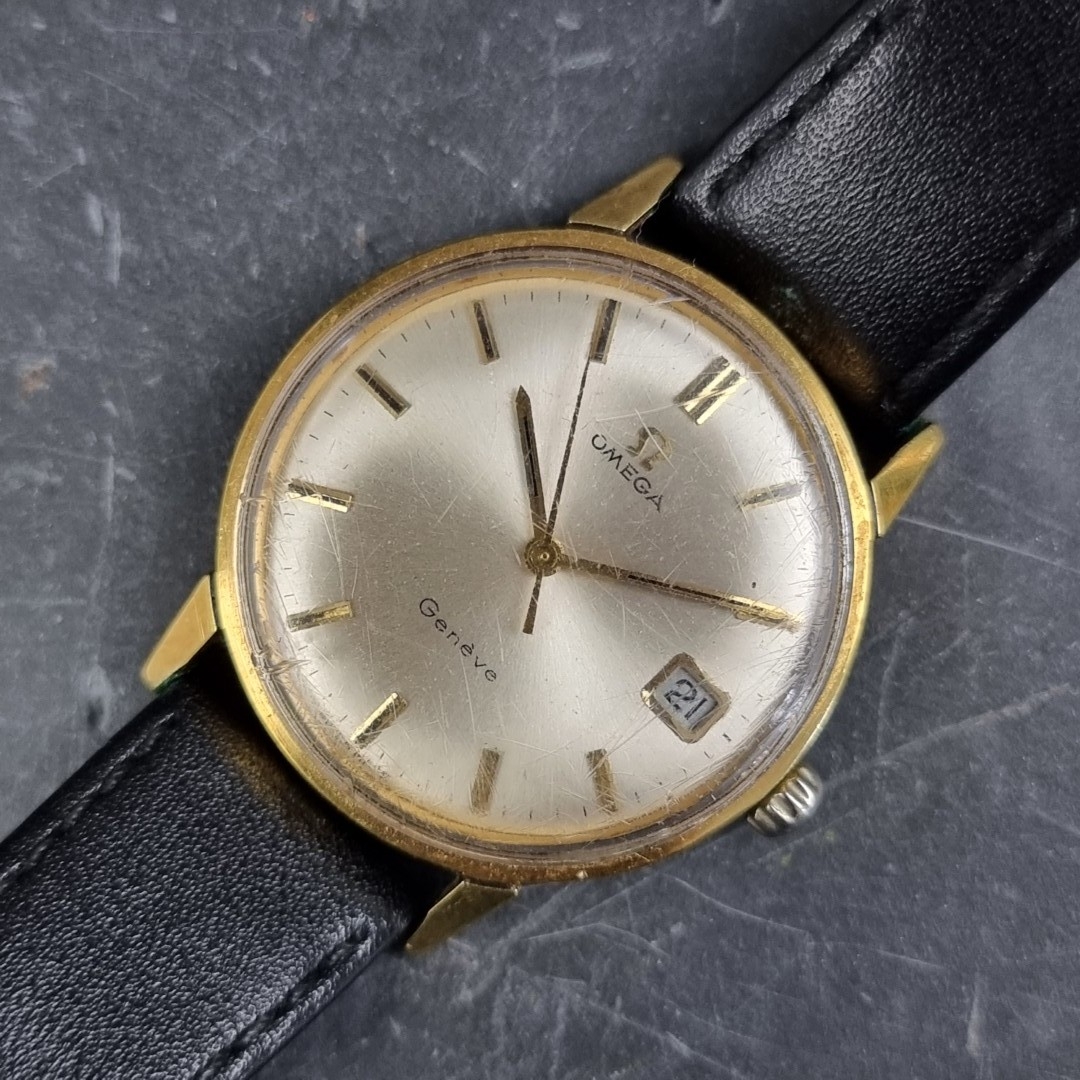A 1968 Omega 'Geneve' gold capped manual wind wristwatch, 34.5mm, Ref. 136.011SP, Cal. 613, on black leather strap.