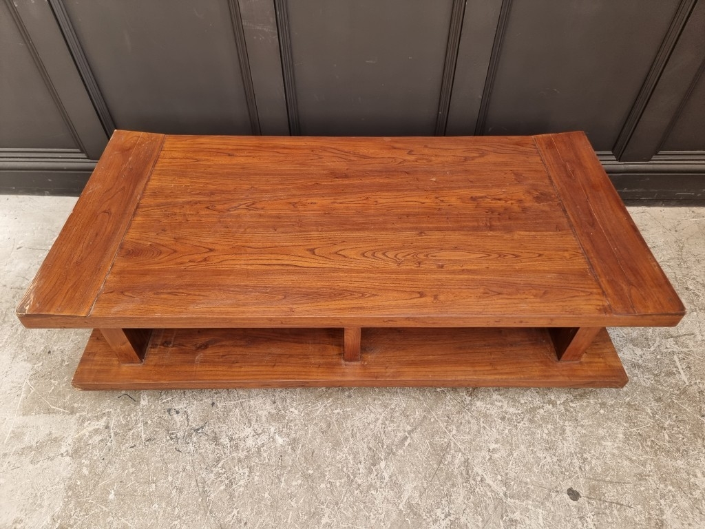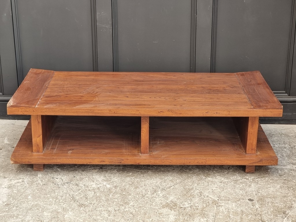 A contemporary Japanese style low coffee table, 135cm wide, (s.d.).