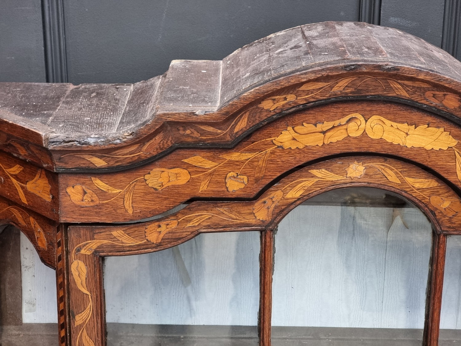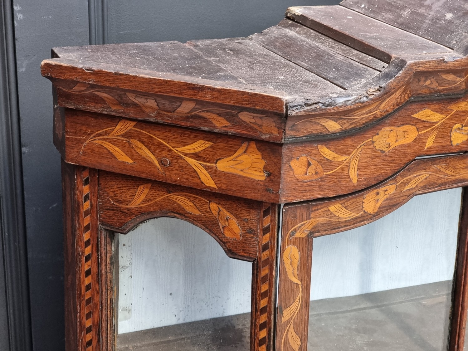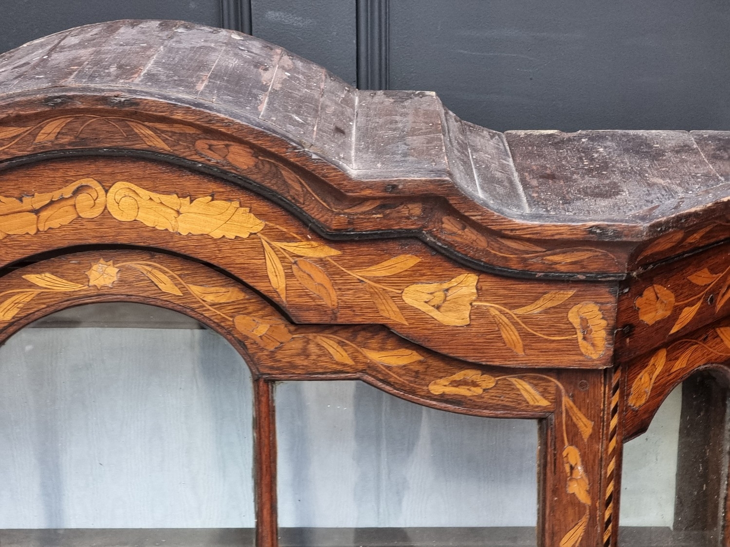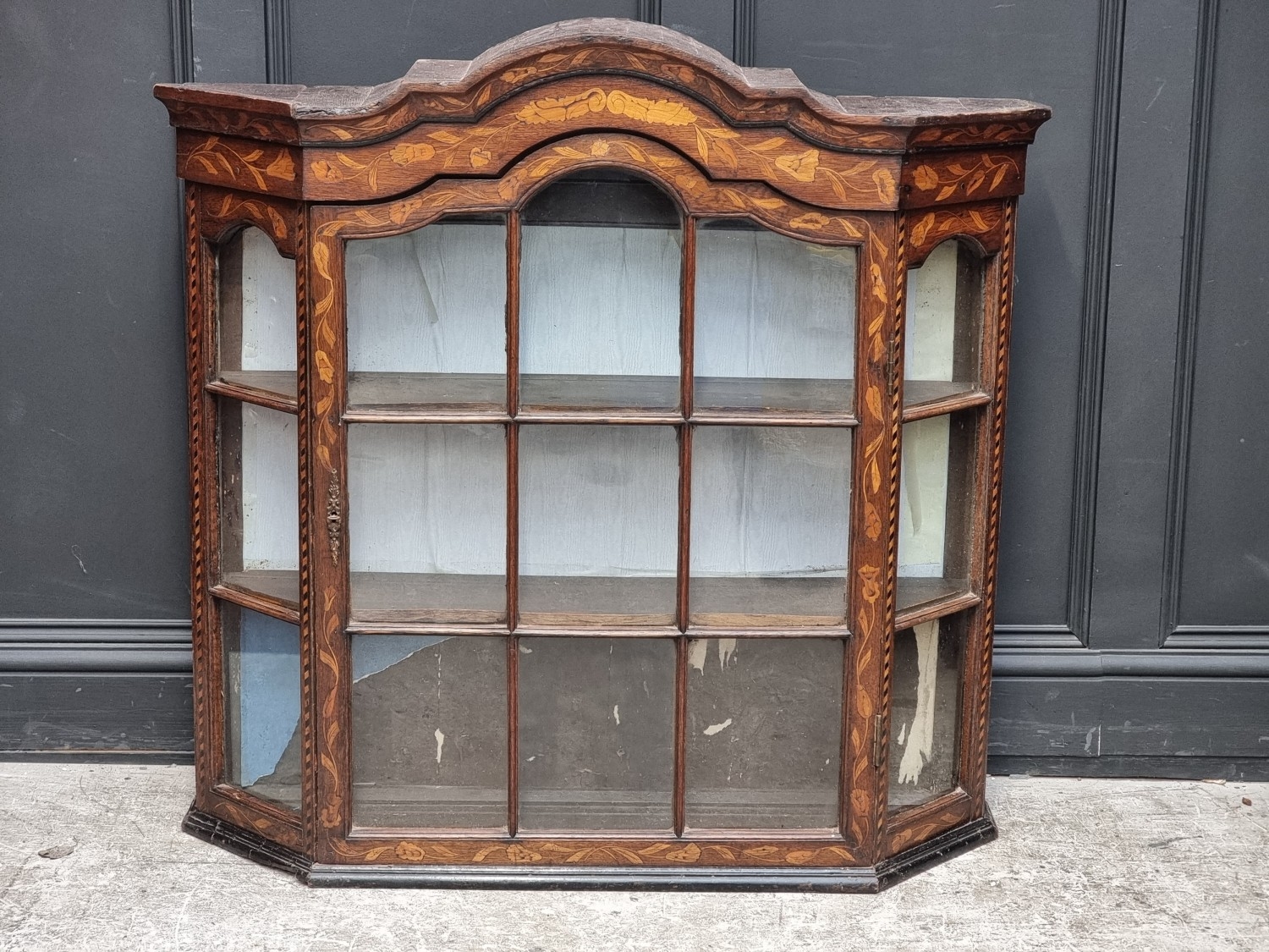 A 19th century Dutch marquetry bookcase section, 102.5cm high x 107.5cm wide.