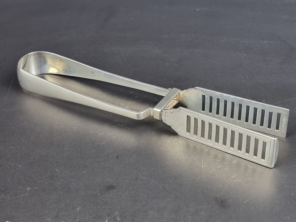 A pair of Edwardian silver asparagus tongs, by William Hutton & Sons Ltd, London 1904, 141g.