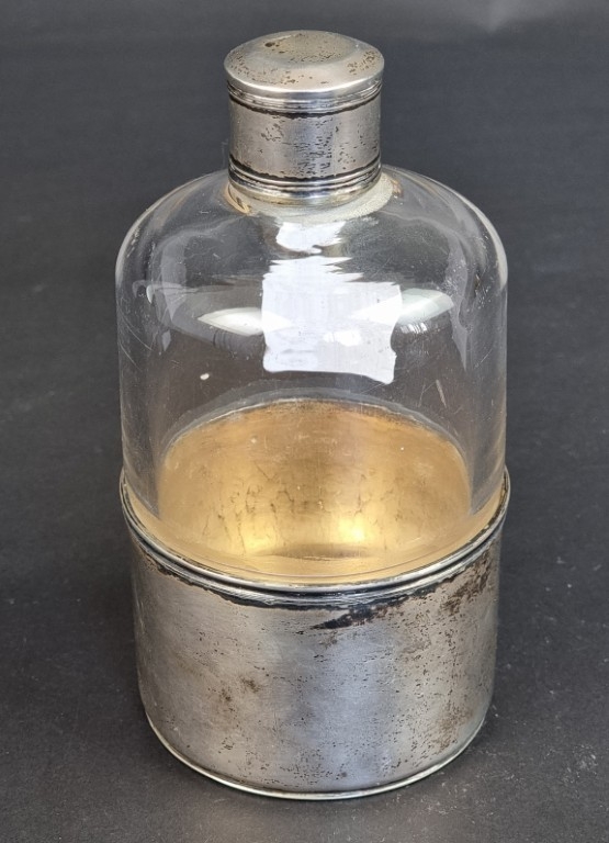 A George IV silver mounted glass bottle, by I R, London 1822, 14.5cm high, 106g.