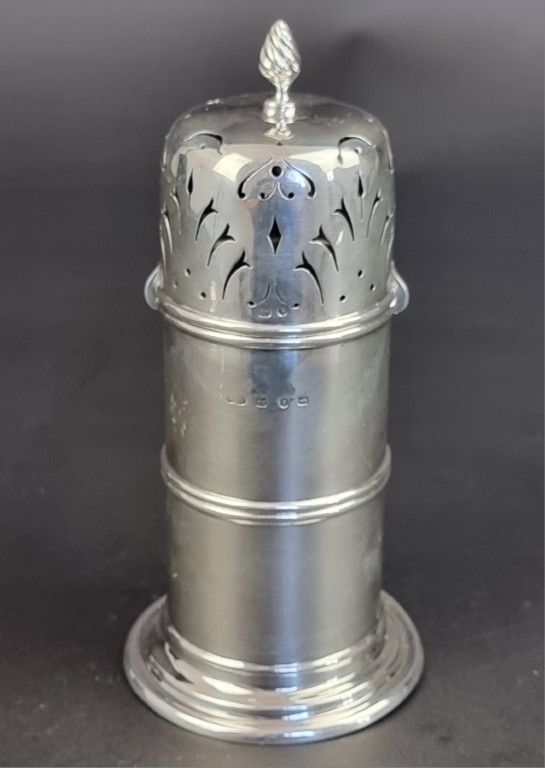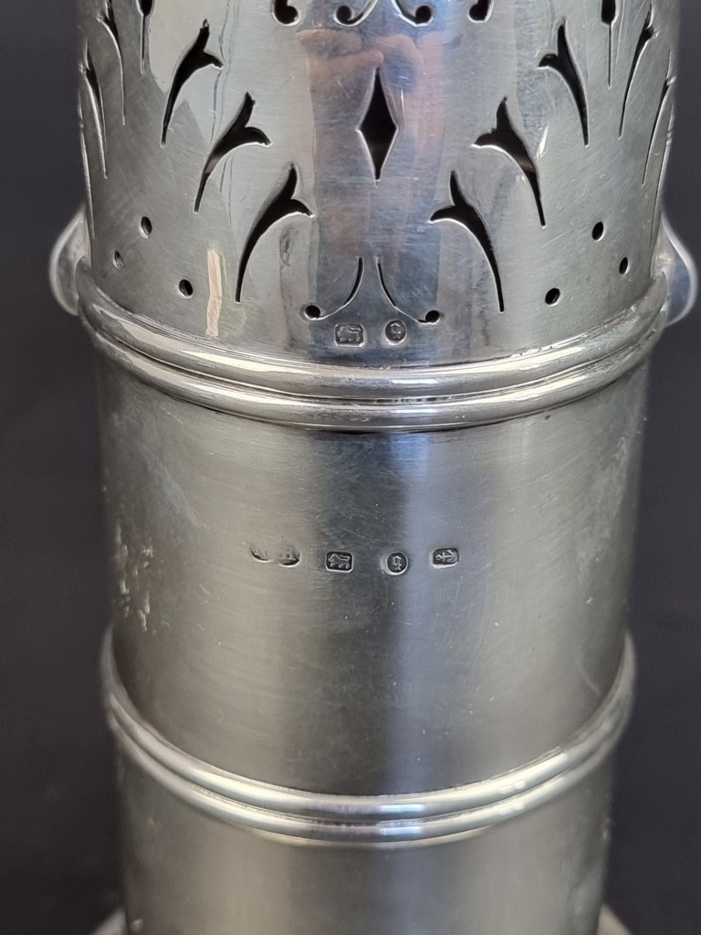 A Victorian silver sugar caster, by Nathan & Hayes, Birmingham 1890, 18cm high, 216g.