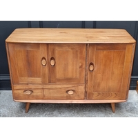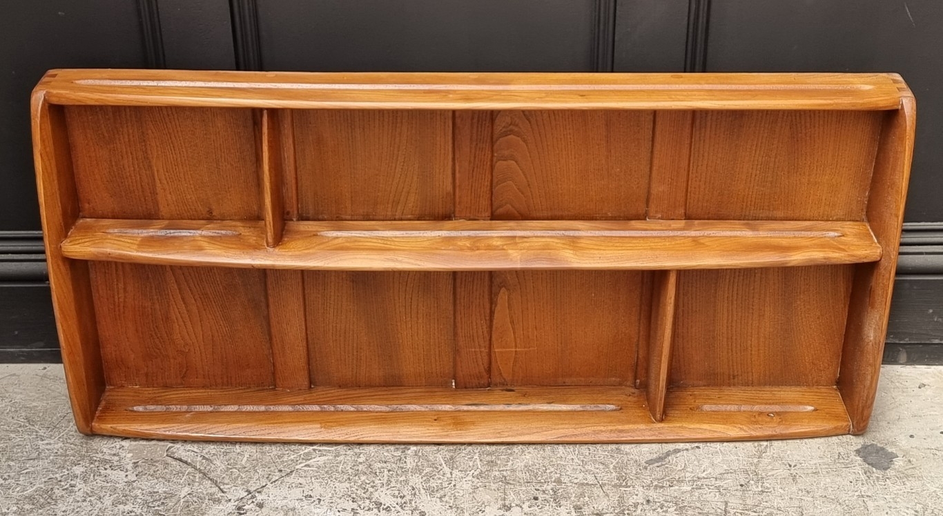 An Ercol pale elm hanging plate rack, 106.5cm wide.