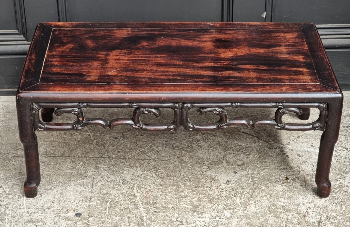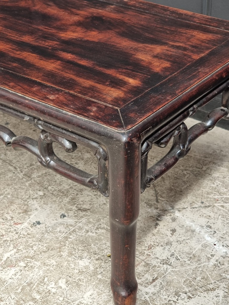 A late 19th century Chinese hardwood rectangular low occasional table, with simulated bamboo frieze, 76cm wide.