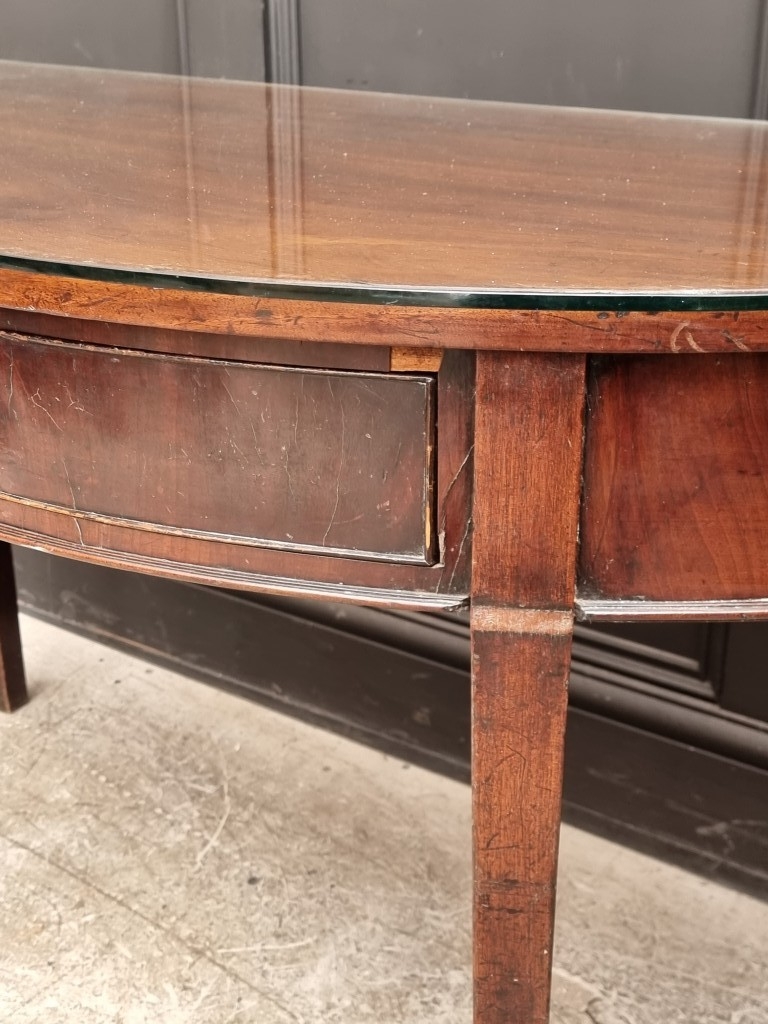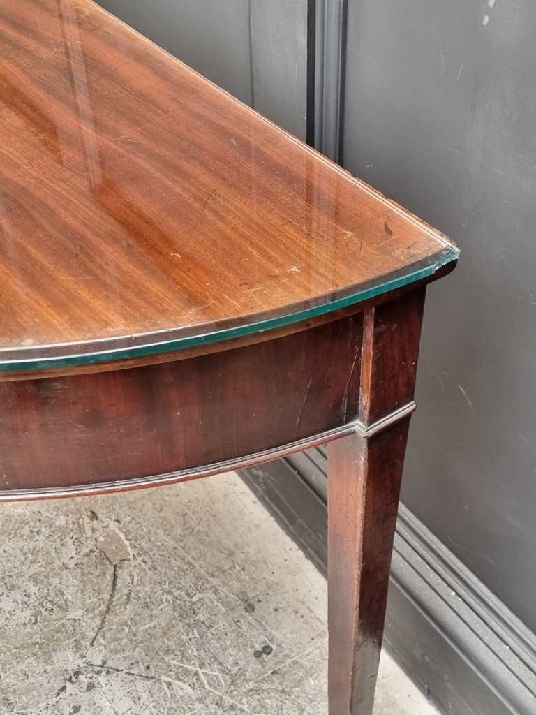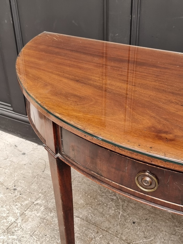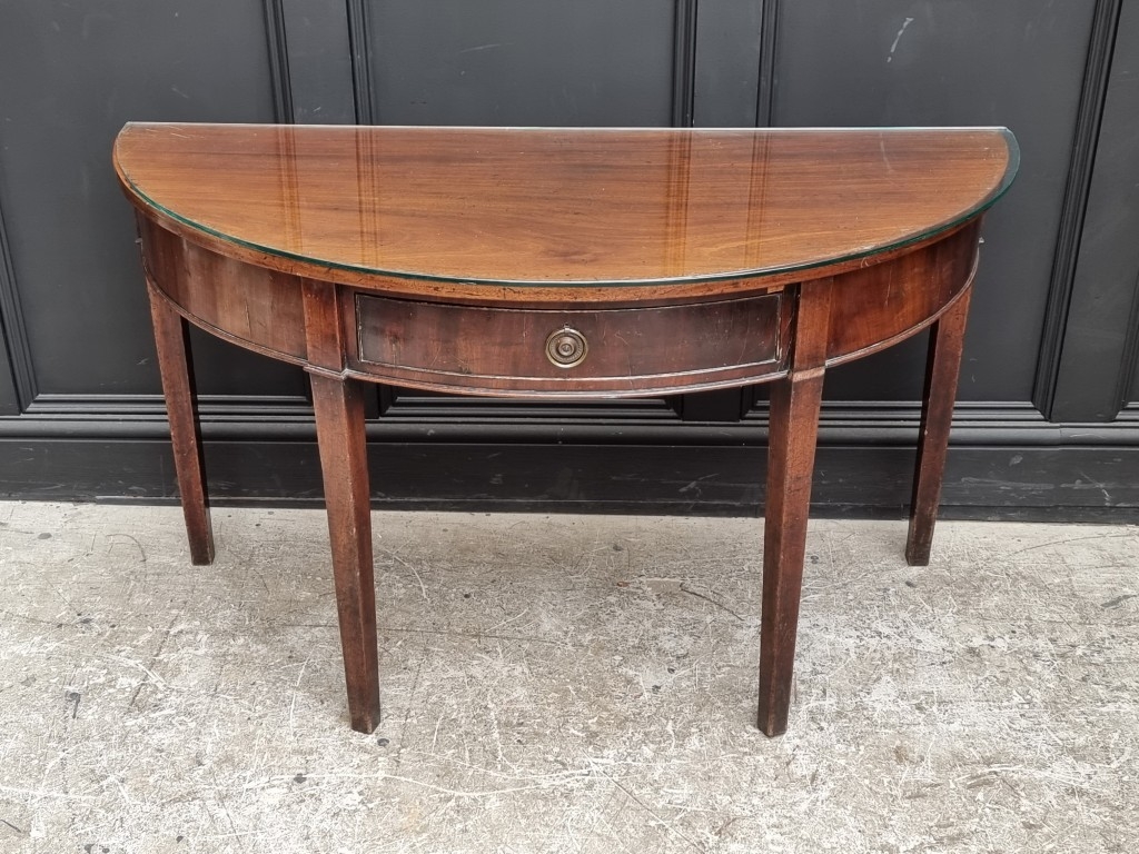 A 19th century mahogany single drawer demi-lune console table, 122cm wide.