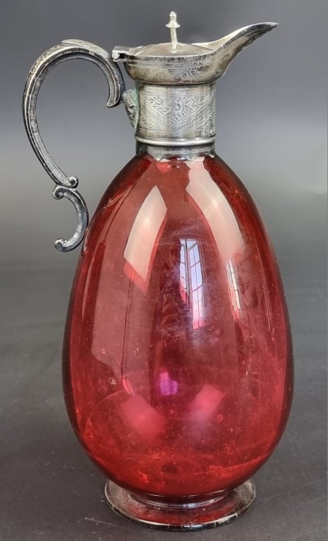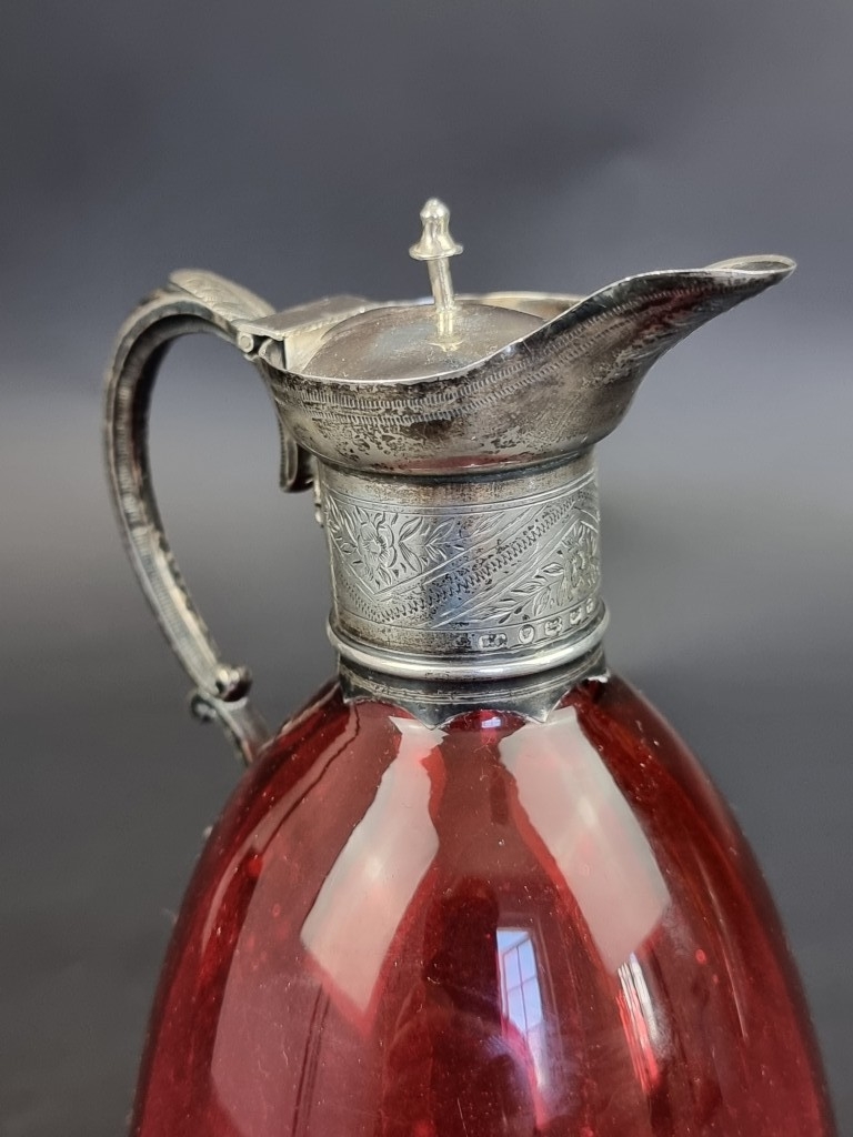 A Victorian silver mounted claret jug, by I.C, Birmingham 1868, 21.5cm high.