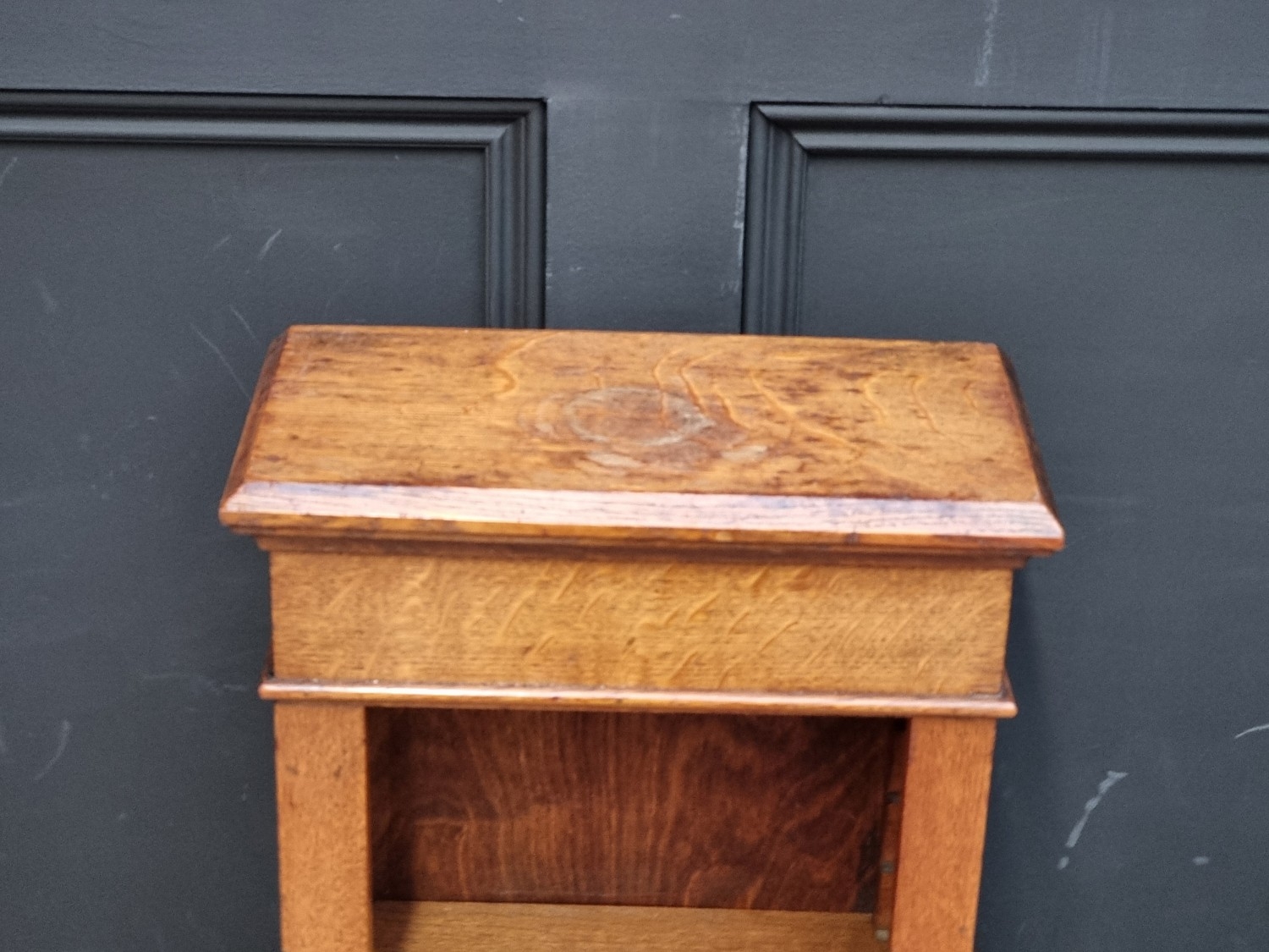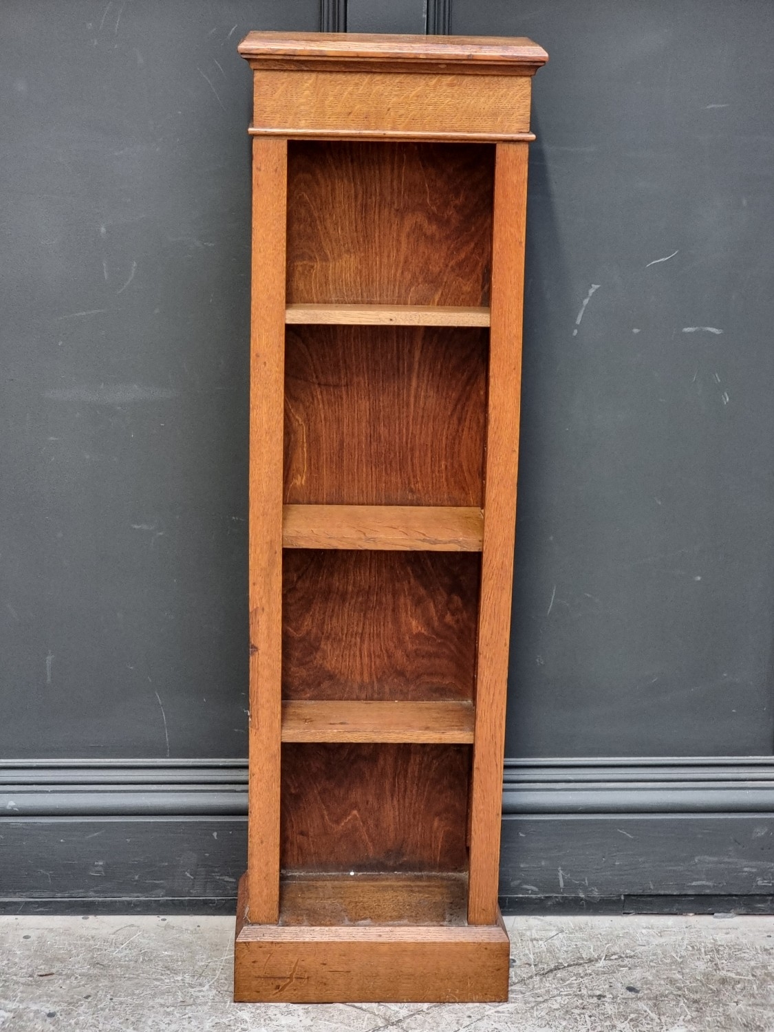 An early 20th century oak pilar bookcase, 112.5cm high x 33cm wide.
