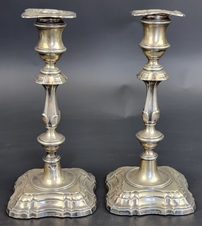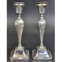 A pair of silver candlesticks, by Fordham & Faulkner, Sheffield 1913, 23.5cm high.
