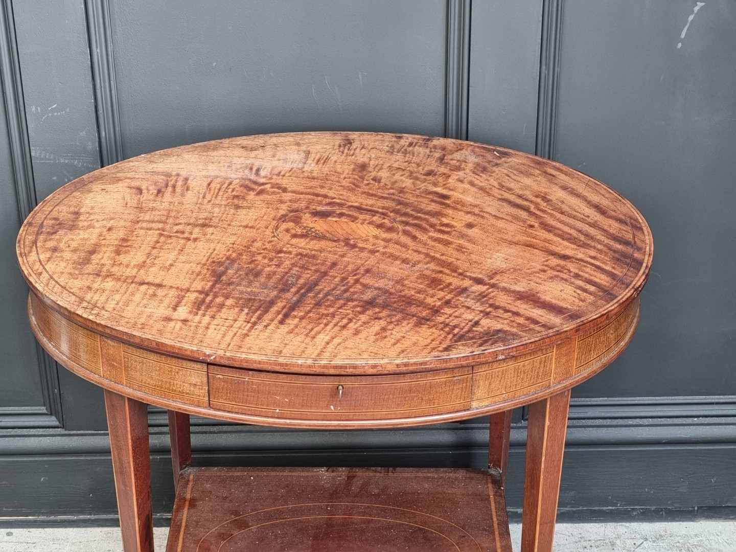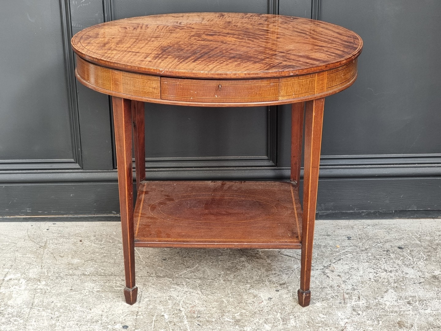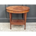 An Edwardian mahogany and inlaid oval occasional table, 73.5cm wide.