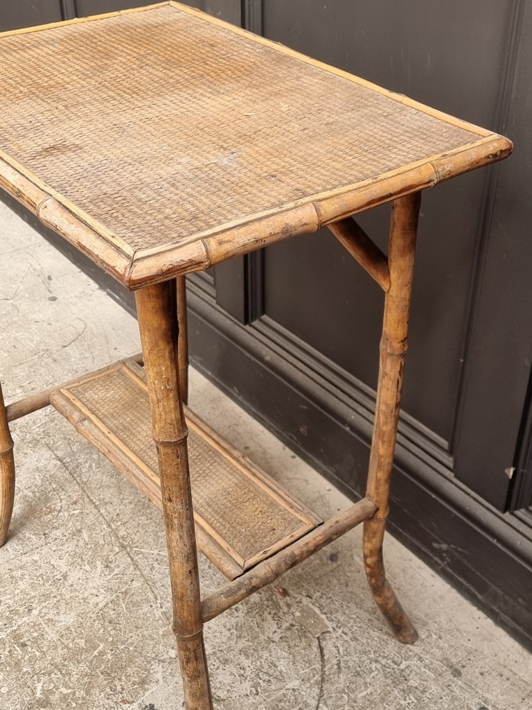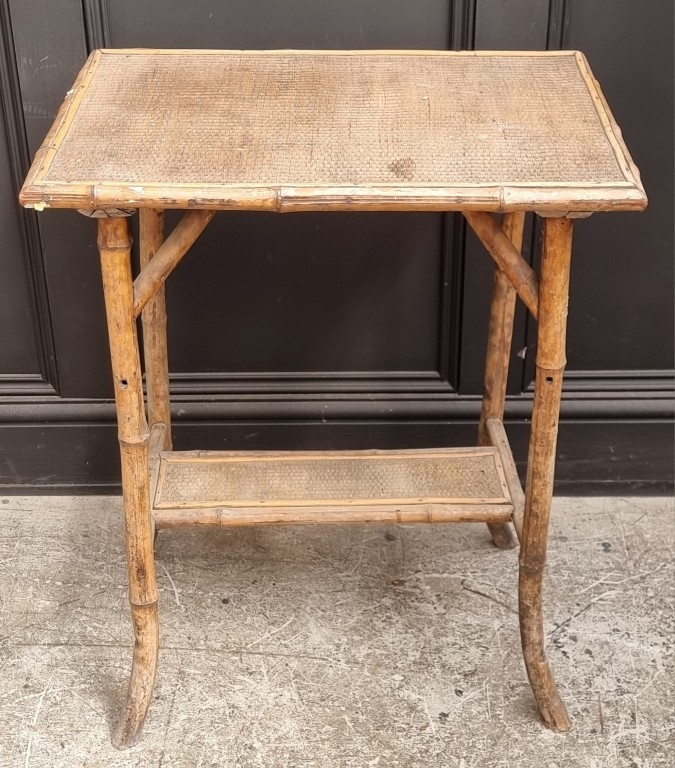 An antique bamboo and rattan occasional table, 60cm wide.