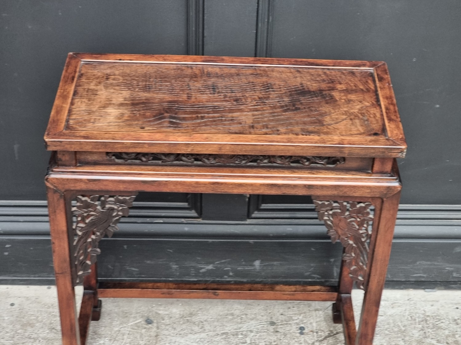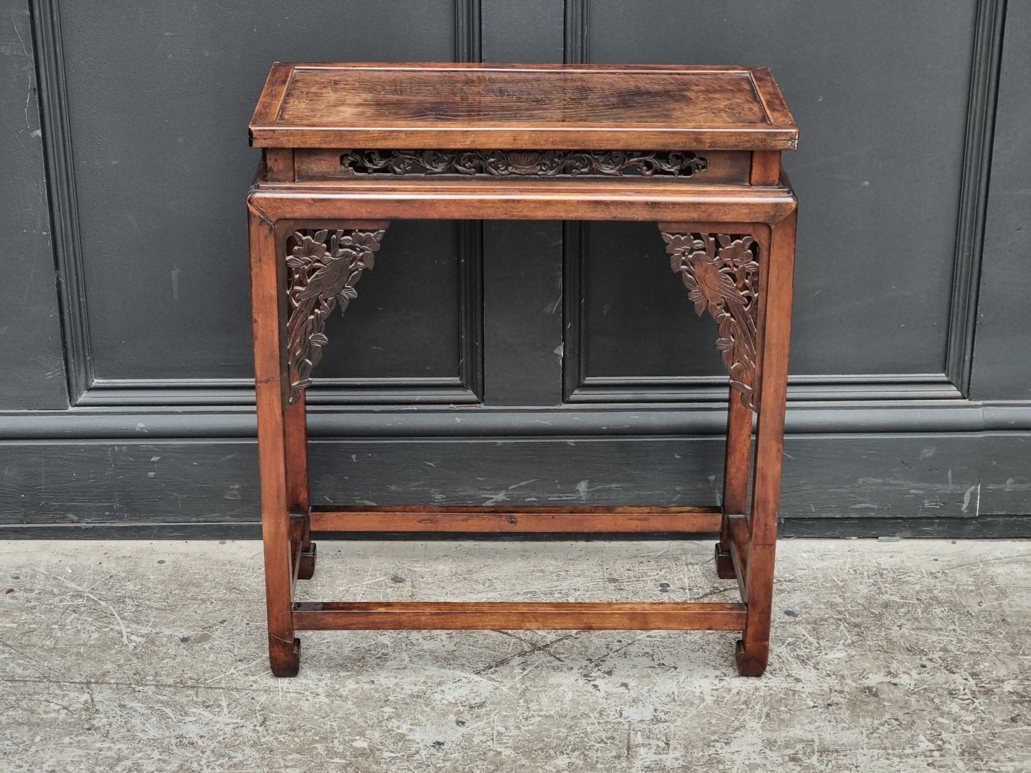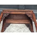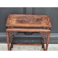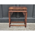 A small Chinese elm top occasional table, with carved and pierced fretwork panels, 54.5cm wide.